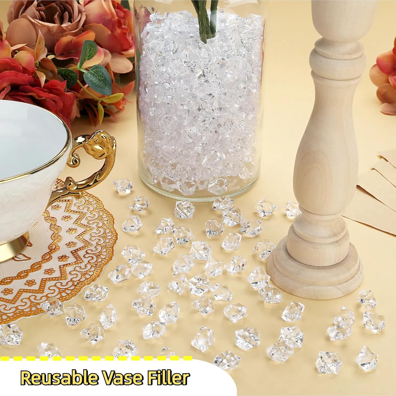YATOJUZI 500pcs Fake Ice Cubes Christmas Vase Fillers Clear Acrylic Crushed Rocks Plastic Diamonds Gems for DIY Accessories Party Wedding Centerpiece Table Scatter Prop Display 0.5" (Only Clear)