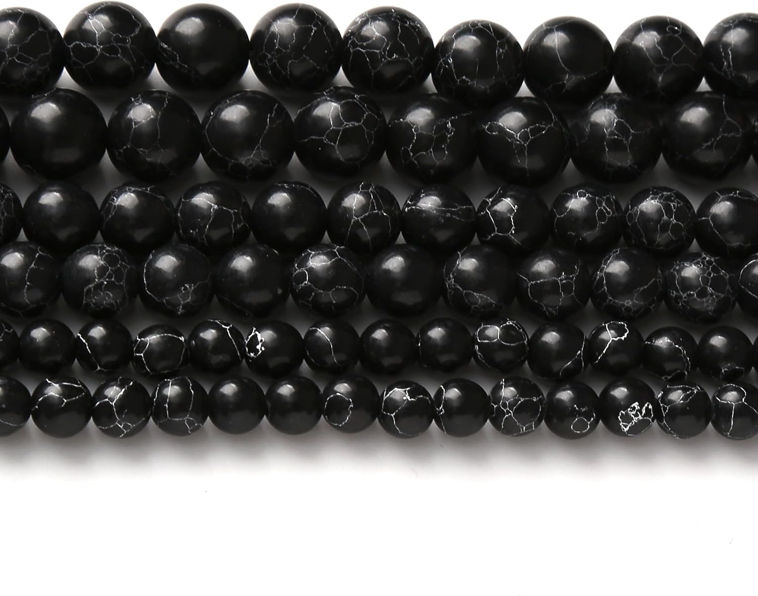 Black Turquoise Stone Beads Gemstone Round Crystal Energy Jade Beads Stone Beads for Jewelry Making DIY Bracelet Necklace Jewelry Making 1 Strand 15.5inch 31PCS 12MM