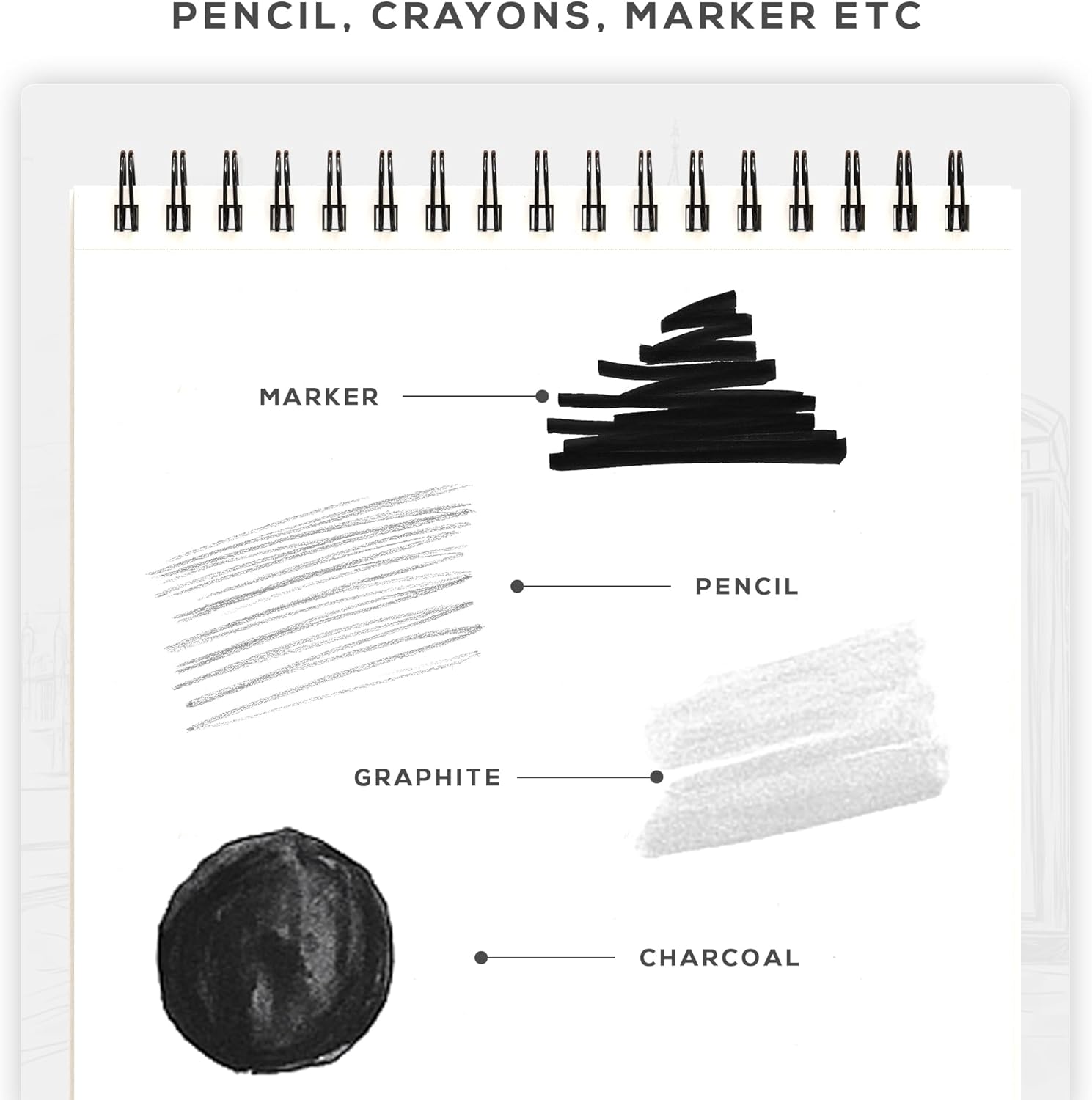 - Effortless Use & Lay-Flat Spiral Binding - Sturdy double-spiral binding keeps your sketchbook perfectly flat for seamless drawing and easy page turns. Work across full spreads or on single pages with total creative freedom.