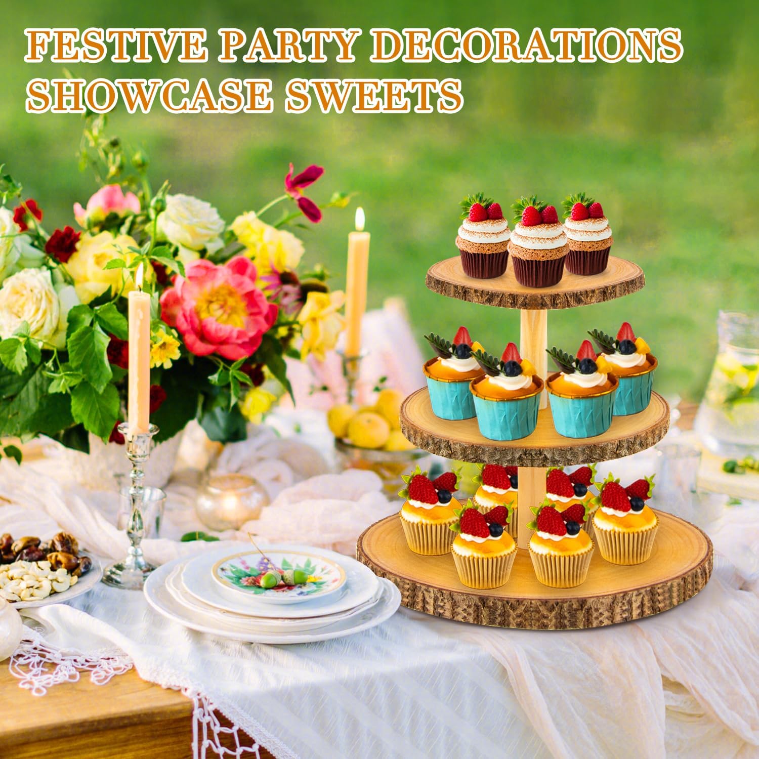 - Rustic Wooden Elegance: Crafted from premium paulownia wood with authentic bark, this cupcake stand exudes a charming rustic vibe, perfect for woodland-themed events and farmhouse decor.