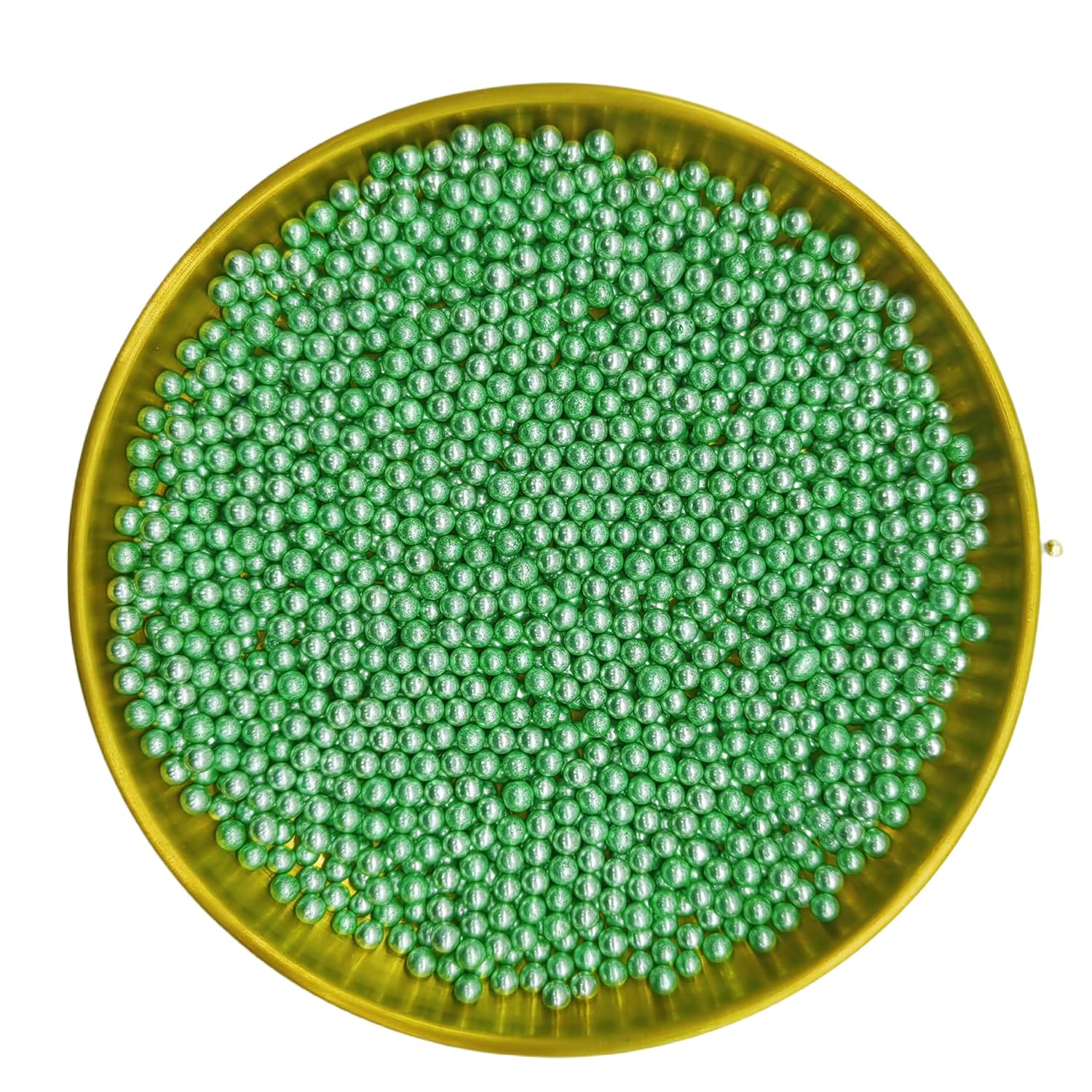 Edible Silver Green Pearl Sugar Sprinkles Candy 4mm Mini Pearls Cake Decorations Cupcake Toppers Cookie Decorating Perfect for Wedding Party Valentine Halloween Christmas Supplies 3OZ