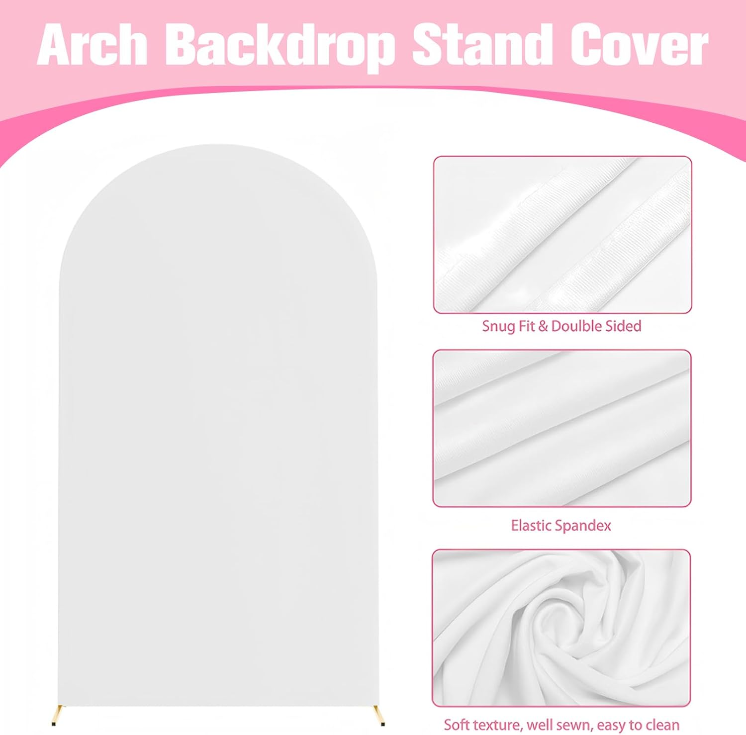 Bazen Wedding Arch Backdrop Stand 6FT, 5FT, 4FT Set of 3 Metal Arch Backdrop Stand with White Arch Cover for Birthday Party Wedding Ceremony Bridal Baby Shower Banquet Party Event Decor