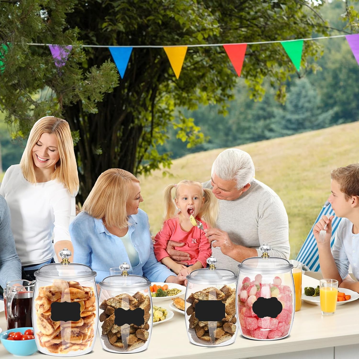 - Package Content: You will receive 2 pcs 64 oz and 2 pcs 90 oz clear plastic jars with lids,4 spoons and 1 label. Ideal for those who bake or entertain frequently, this set efficiently stores assorted goodies and meets various needs. Note: These jars are made of plastic, so please confirm the material before purchasing.