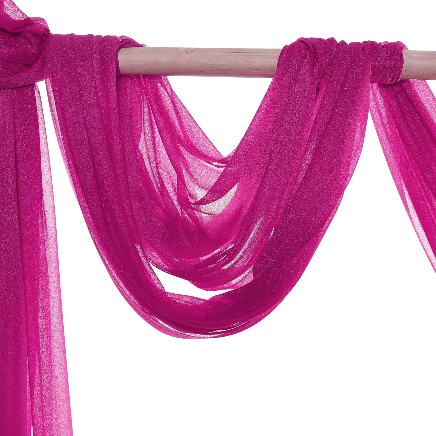 VDS Pack of 3 Panel (30 Inch X 20 Feet) Wedding Arch Draping Fabric Sheer Chiffon Fabric Drapery for Wedding Ceremony Reception Swag Backdrop Canopy Chuppah ARBO Altars Decoration (Magenta)