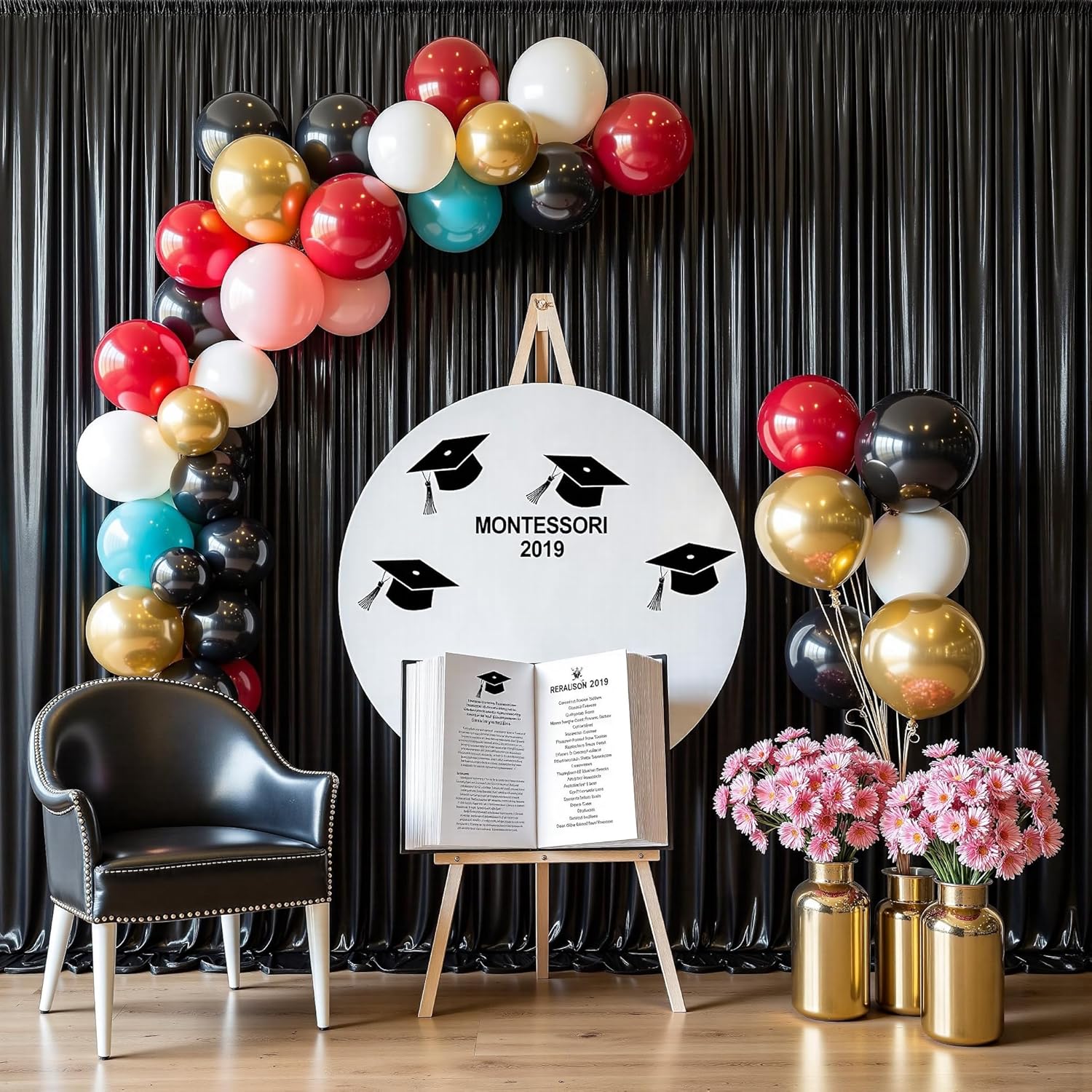- For Kinds of Occasions: Our 10ft Black sequin glitter polyester drapes are perfect for kinds of occassions. Such as wedding party, baby showers, birthday parties, photo booth,anniversary,graduation, home decoration and more.