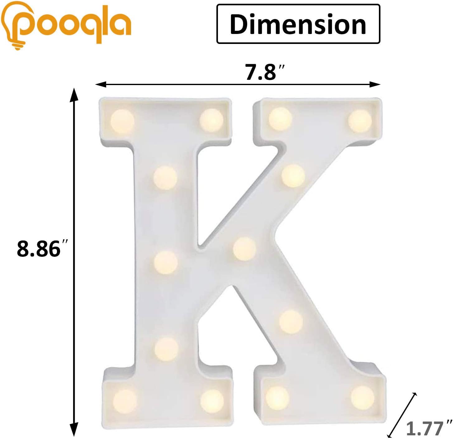 Pooqla LED Marquee Letter Lights, Warm White and Cool White Decorative Lighted Letters, Light Up Alphabet Letters for Boys Girls, Party, Wedding, Bar, Night Light, Birthday Decoration, Letter K