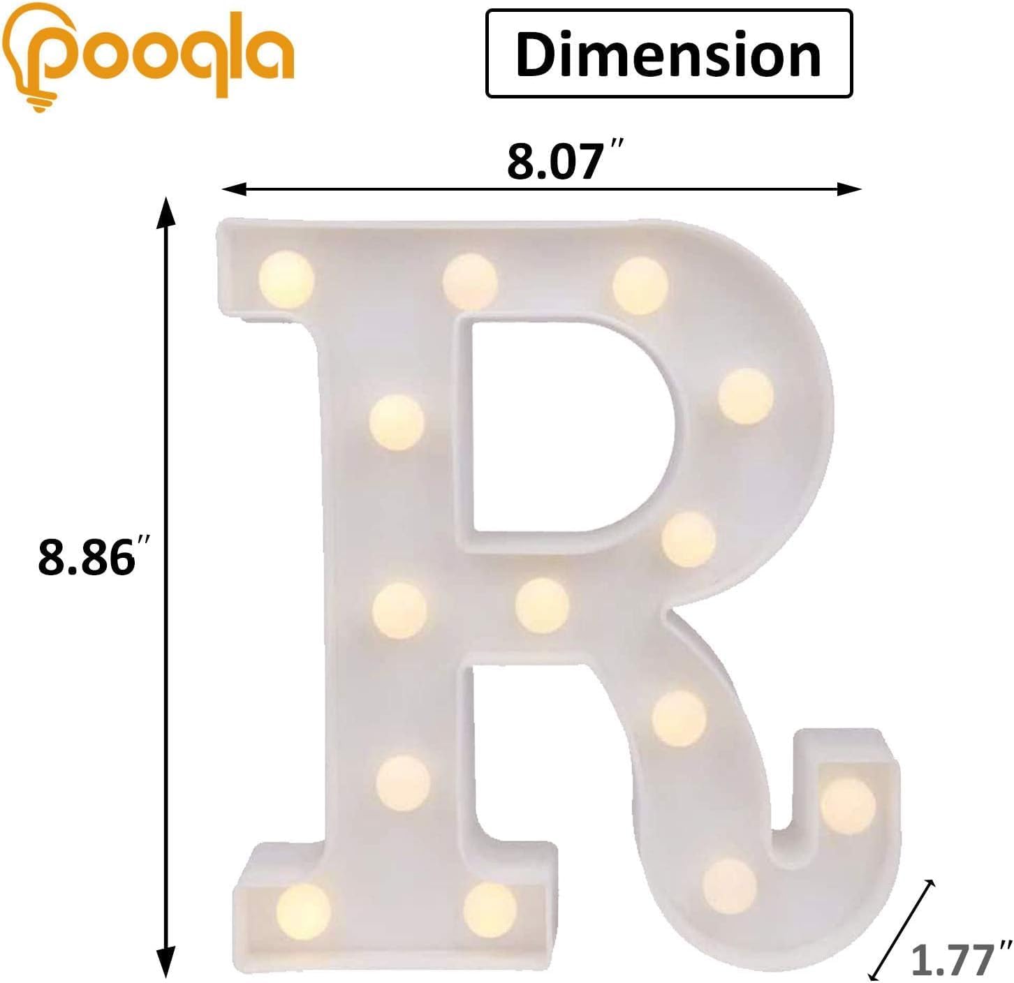 Pooqla LED Marquee Letter Lights, Warm White and Cool White Decorative Lighted Letters, Light Up Alphabet Letters for Boys Girls, Party, Wedding, Bar, Night Light, Birthday Decoration, Letter R