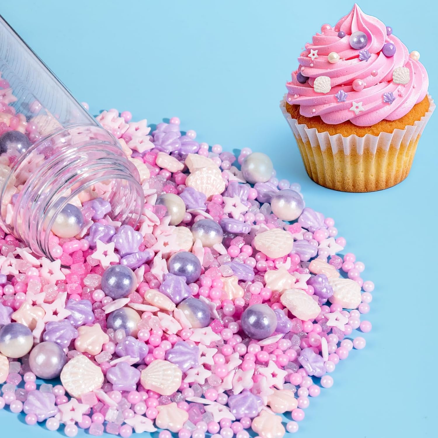 Sugarzy Edible Pearls Sprinkles Cake Decorating,130g/4.58oz,Purple Pink Pearl Sugar Sprinkle Mix Seashell,Baking Ocean Beach Candy Decorations,Perfect for Cookies,Donuts,Cupcake Topper,Birthday Holiday Party Supplies