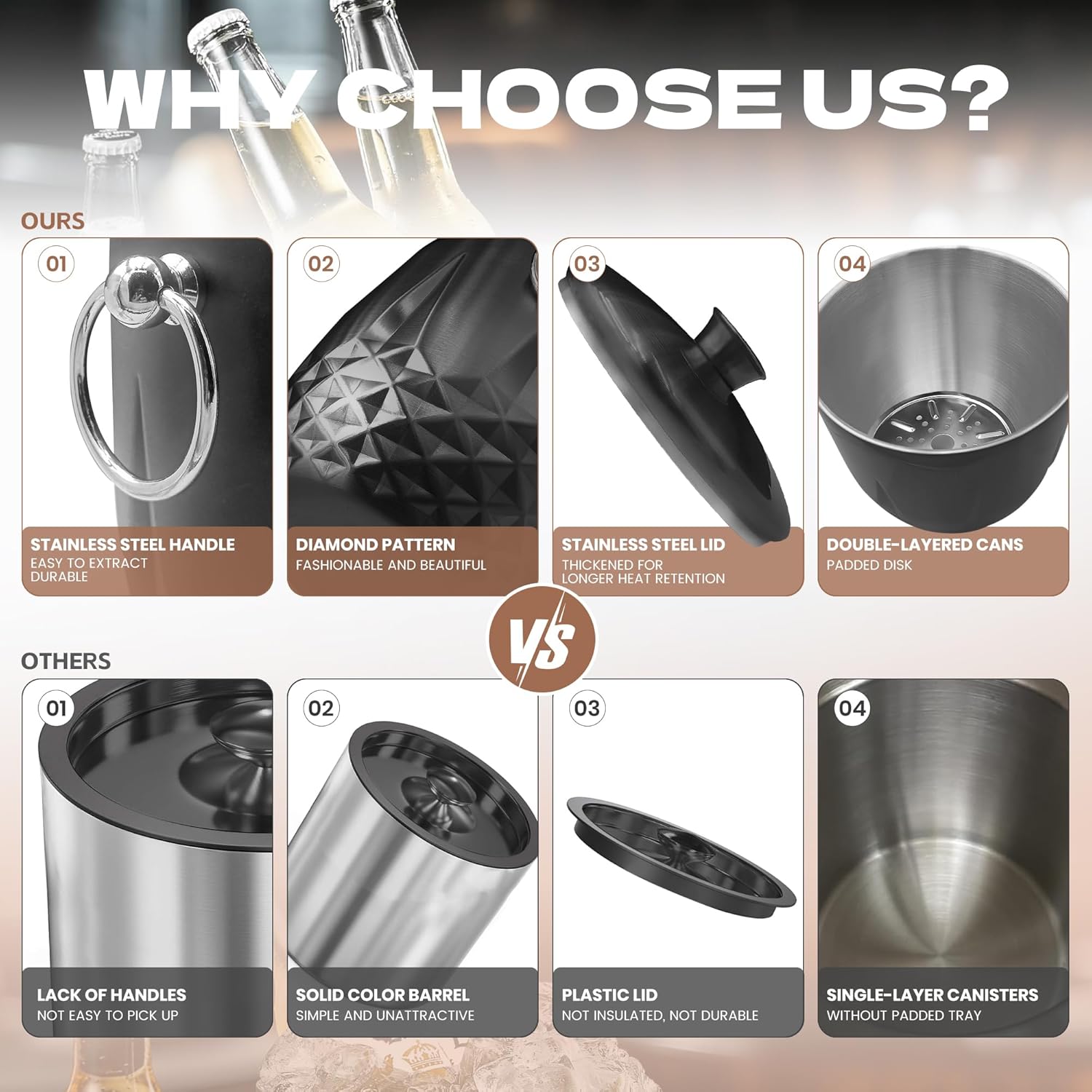 - CAPACITY: 3-liter double-wall insulated ice bucket perfect for parties, bars, and outdoor entertainment, keeping ice frozen for extended periods