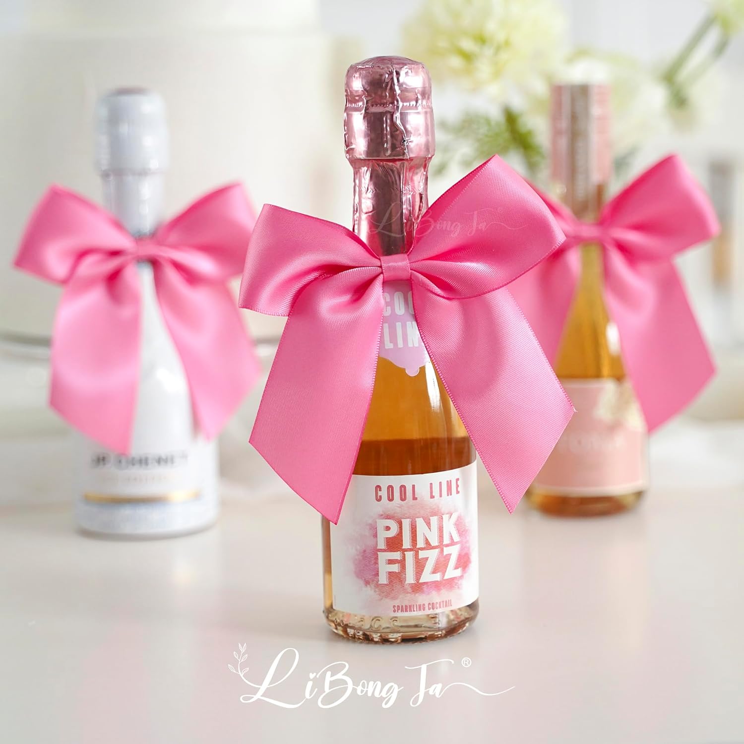 4.5" Satin Ribbon Hot Pink Bows for Gift Wrapping, Twist Tie Bows, Cute Bows for Crafts, Party Favors, Premade Bows Pre-Tied Decorative Bows for Flower Bouquets Candy Apple Bows-24 Counts