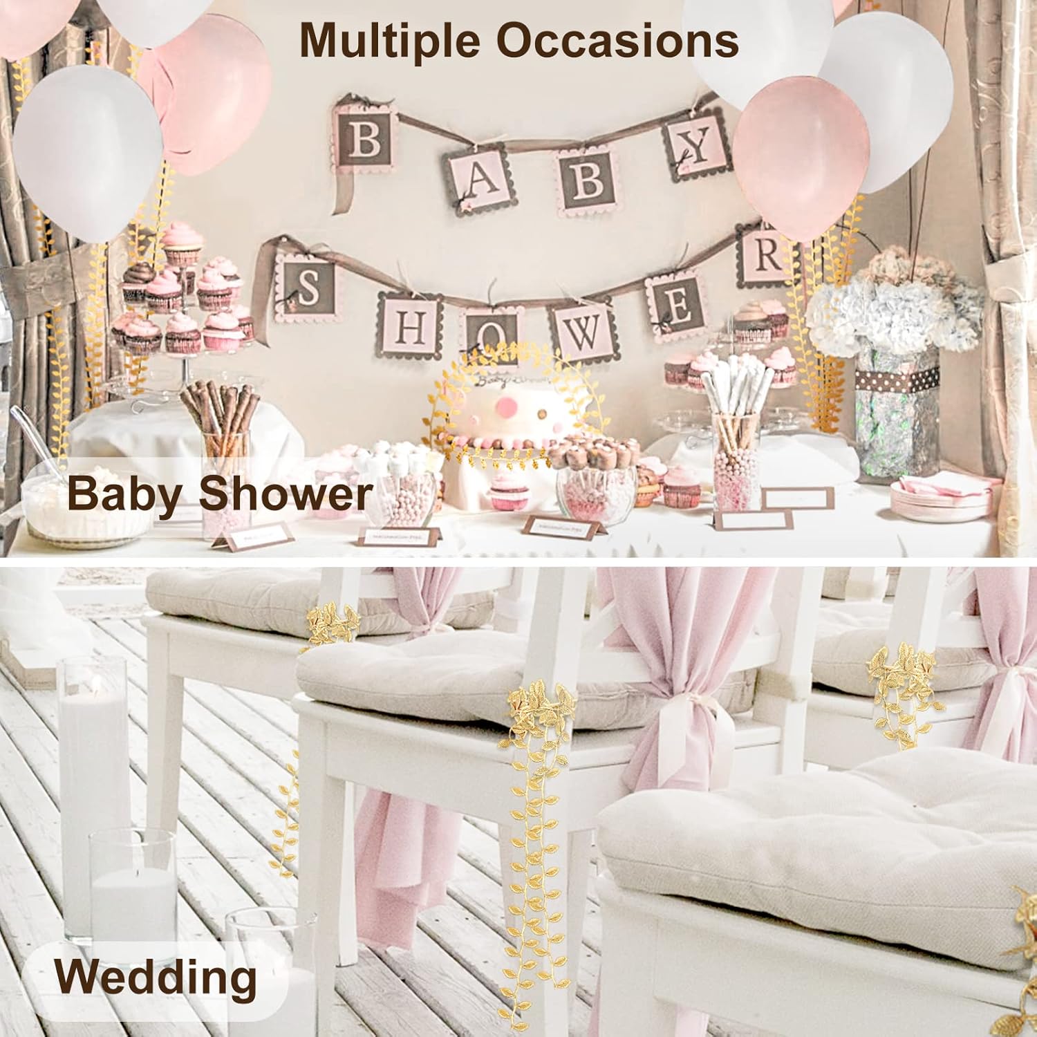 - [Fit for Multiple Occasions]: The total length of the ribbon is 20 Yards, and each leaf is 0.87"(L) x 0.47"(W). It's long enough for the needs of most occasions decoration, and you are free to cut it according to your needs. Great for baby showers, wedding, birthday party, Greek party, Christmas, Halloween, Thanksgiving, Easter, etc.