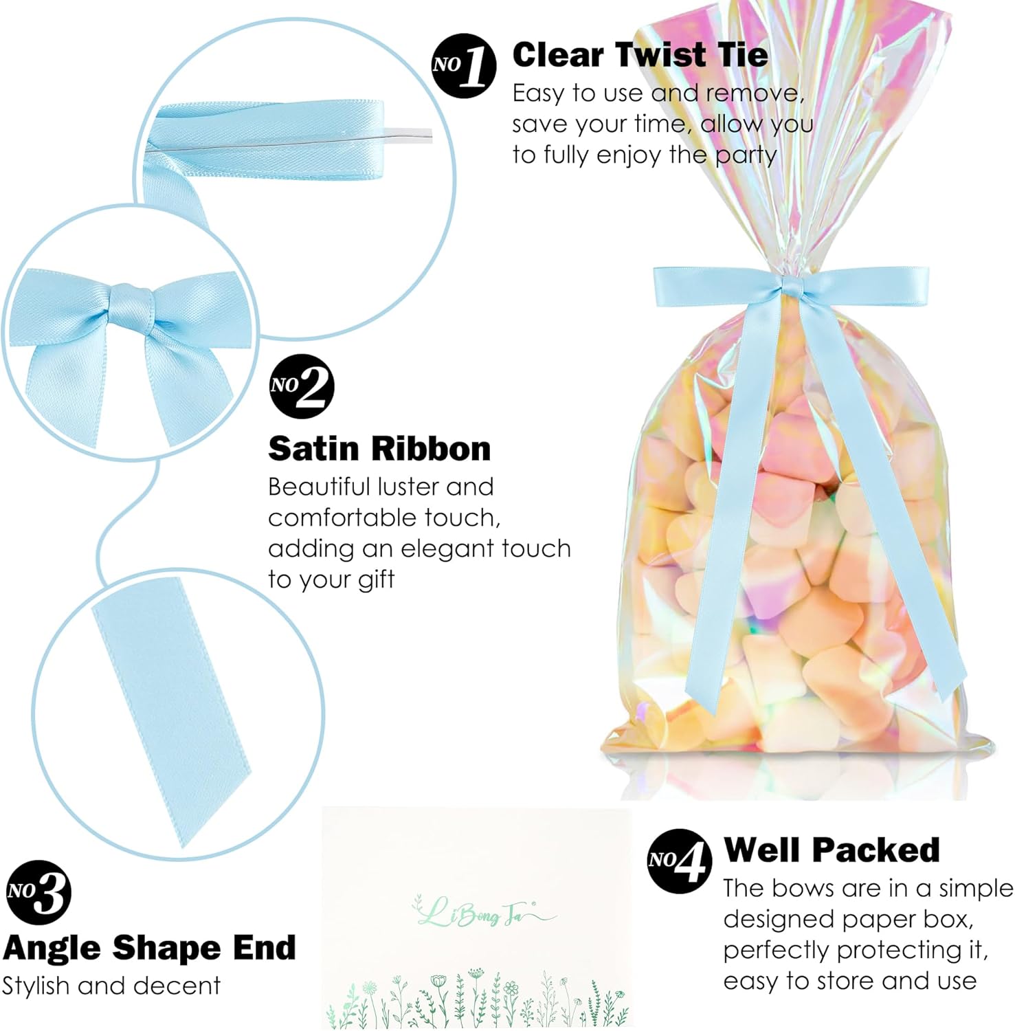 - You will receive 50 satin premade bows packaged in a paper box. Enough for your usage needs. These wrapping bows can hold their shape well and will not fade or deform over time. And these craft bows can ensure that your gift maintains aesthetic appeal for a long time.