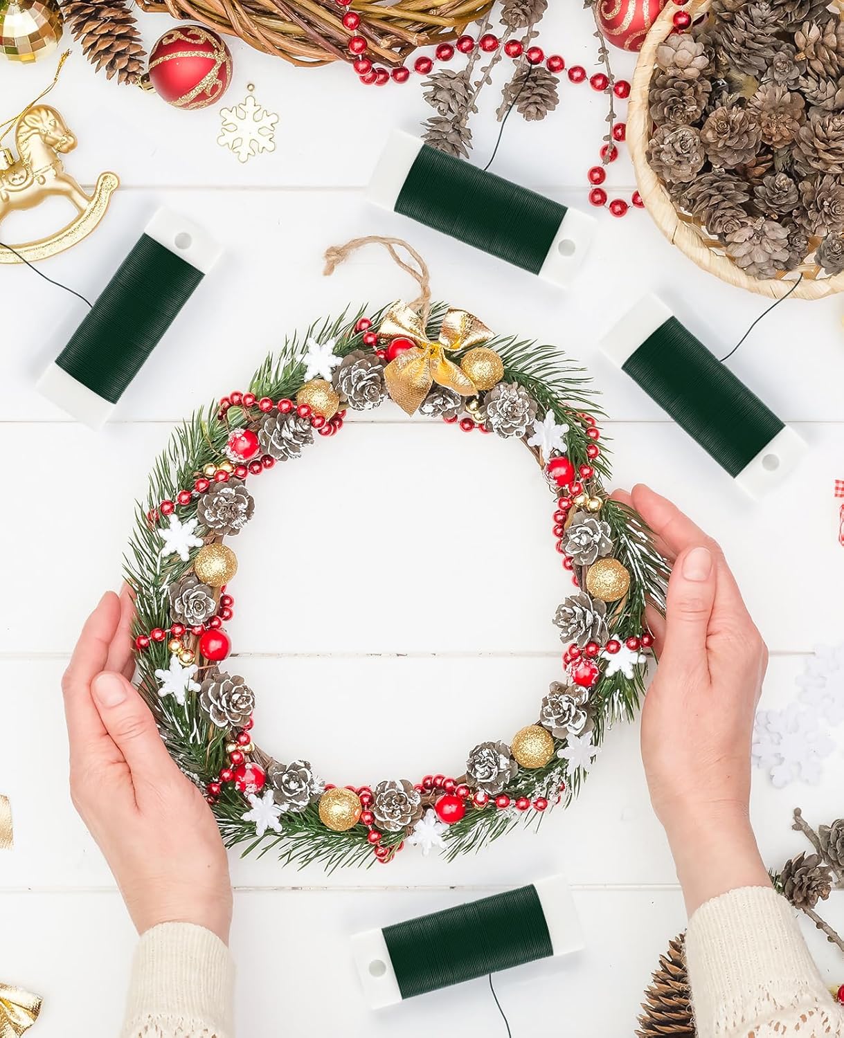 - Wide Applications: This floral wire is suitable for a variety of uses, including Christmas wreaths, flower arrangements, gift wrapping and DIY crafts, providing a strong and flexible solution for all crafting needs. In addition to flower arrangements, this wire can also be used for support in the garden of plants, ensuring stability for climbing or trailing plants while blending seamlessly into the foliage