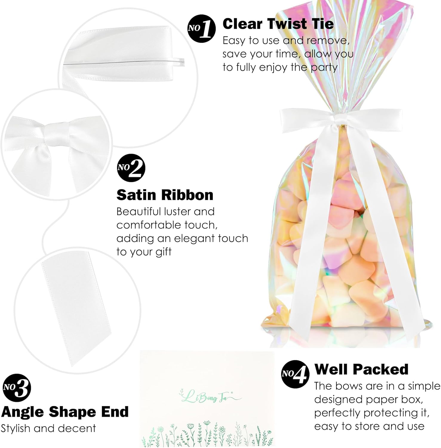 - Package: Come with 50 white satin craft bows, size 5.5'' * 11''. Perfect size, when you decorate your gifts, they are elegant. The appropriate size will make your decoration more attractive, and enough quantity can meet your decoration needs.
