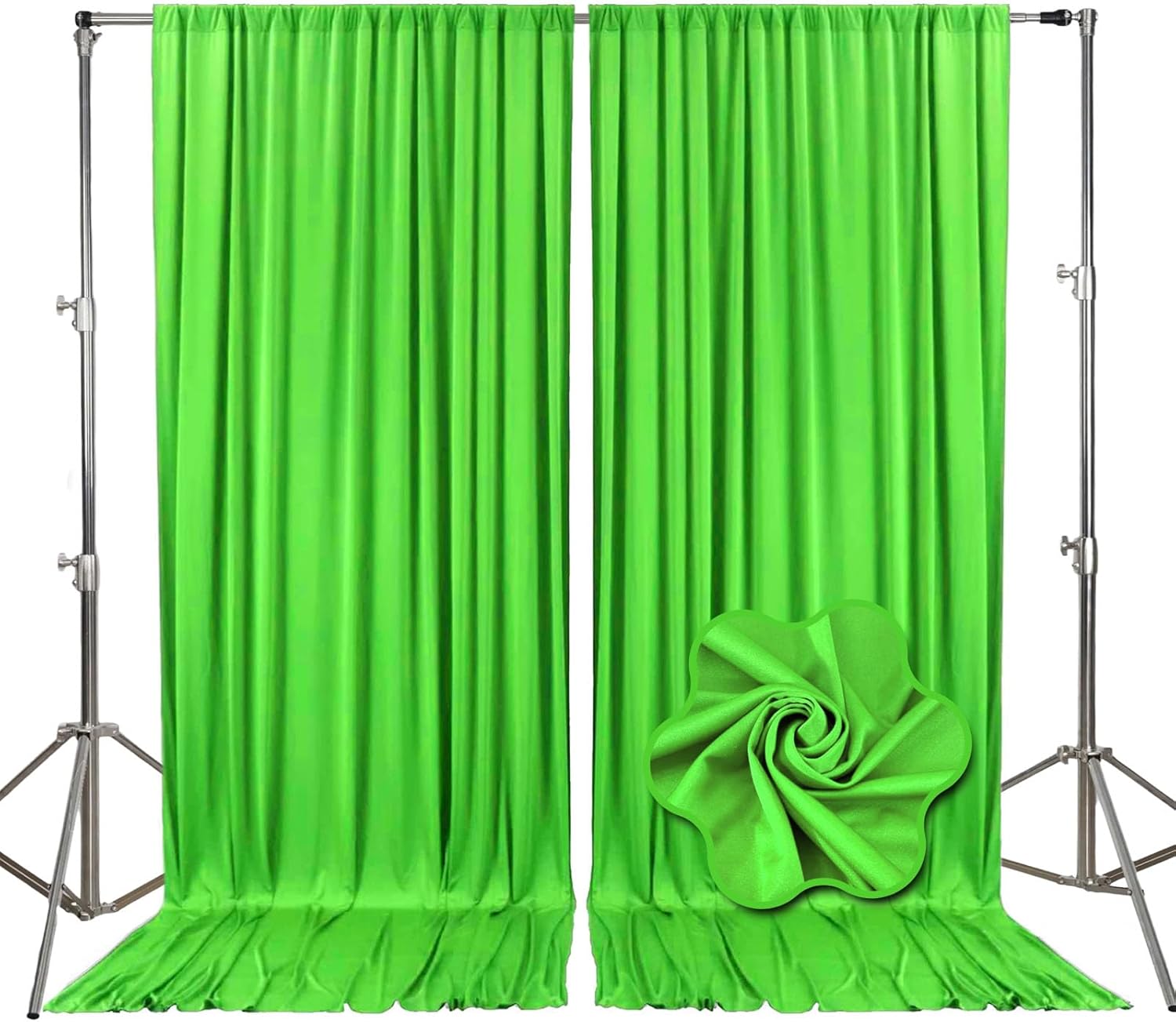 - 【Package Include】Each pack contains 2 panels of fabric shiny satin backdrop curtains. Each backdrop measures 10 feet x 10 feet (60 inches x 120 inches). There is a rod pocket designed on the top of the curtain, allowing you to easily hang it on a pipe or background stand. Tips: ONLY the backdrop curtains, no include a stand.