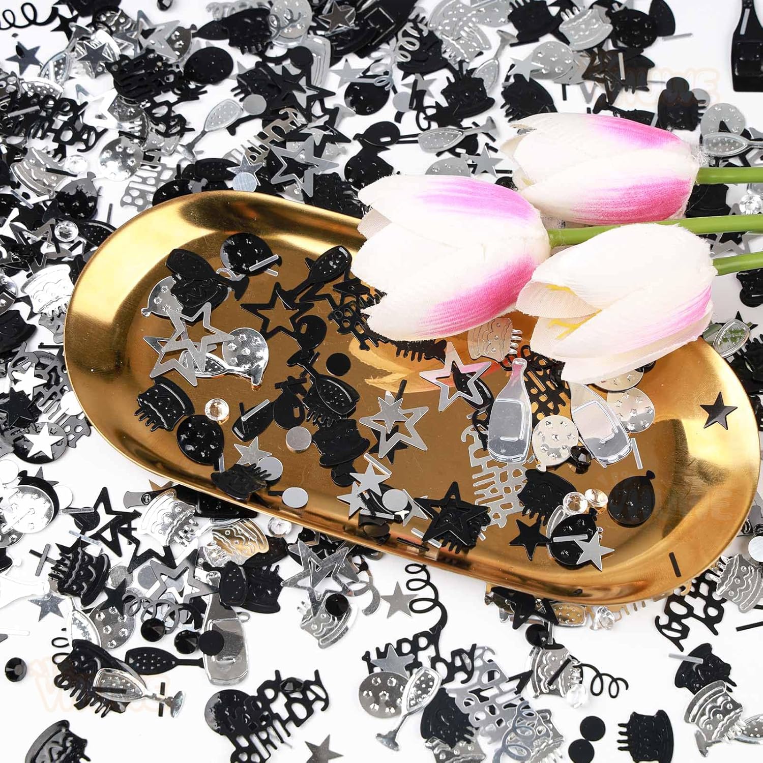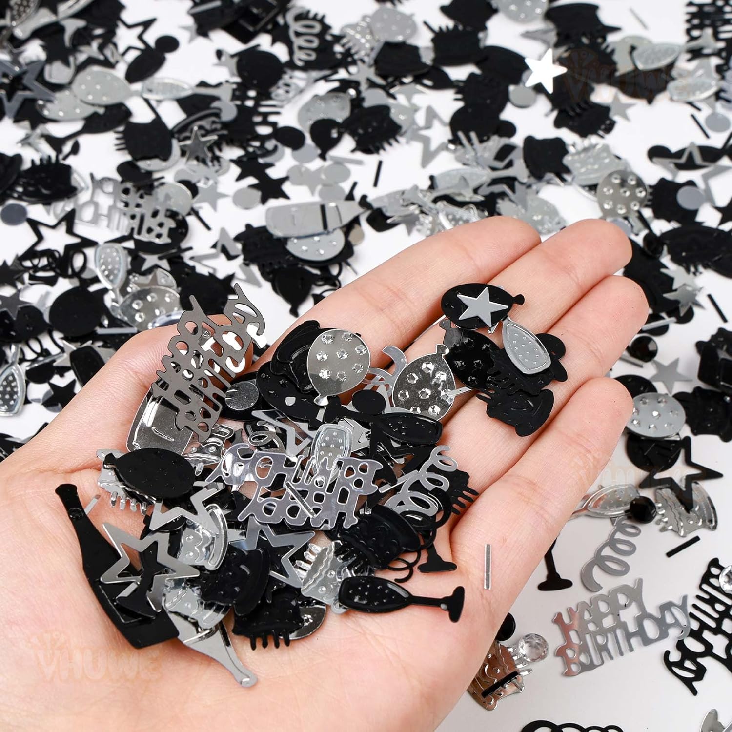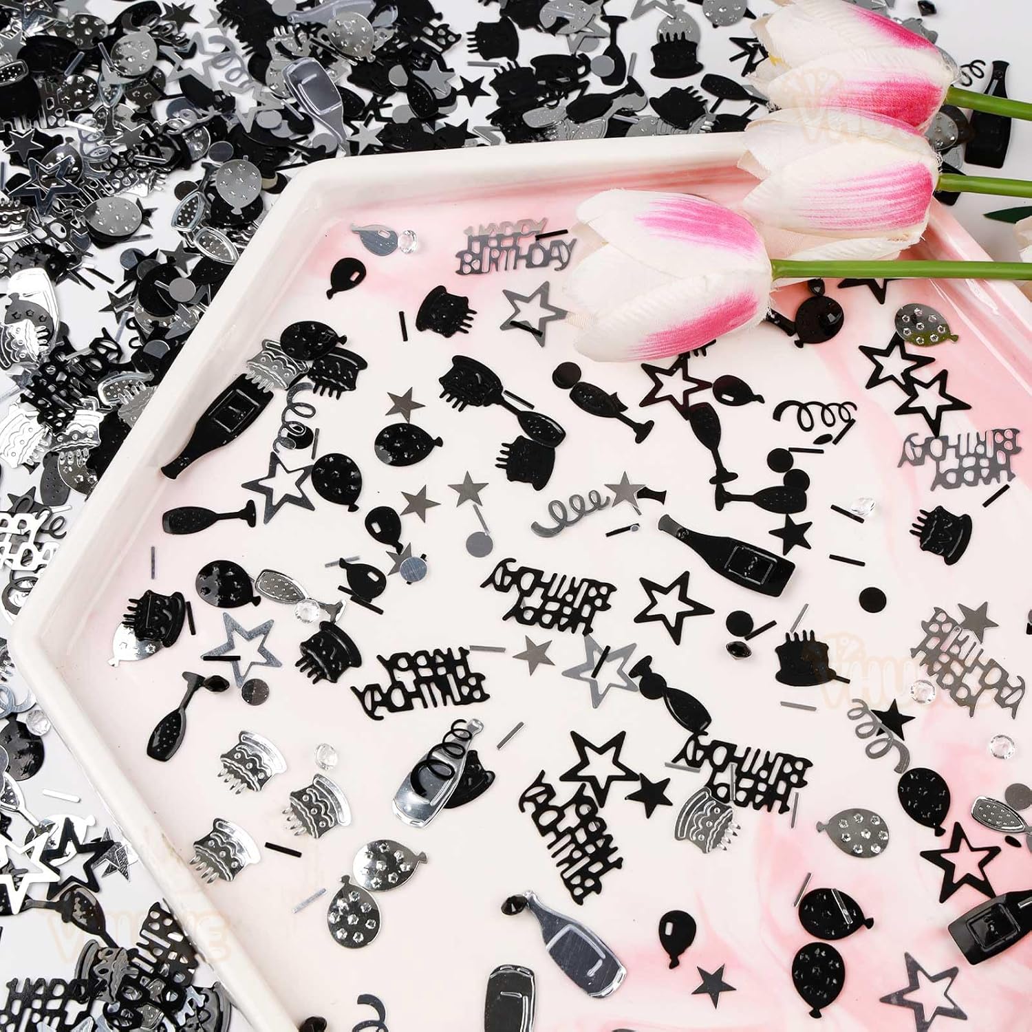 - Color : Black Silver Birthday Confetti