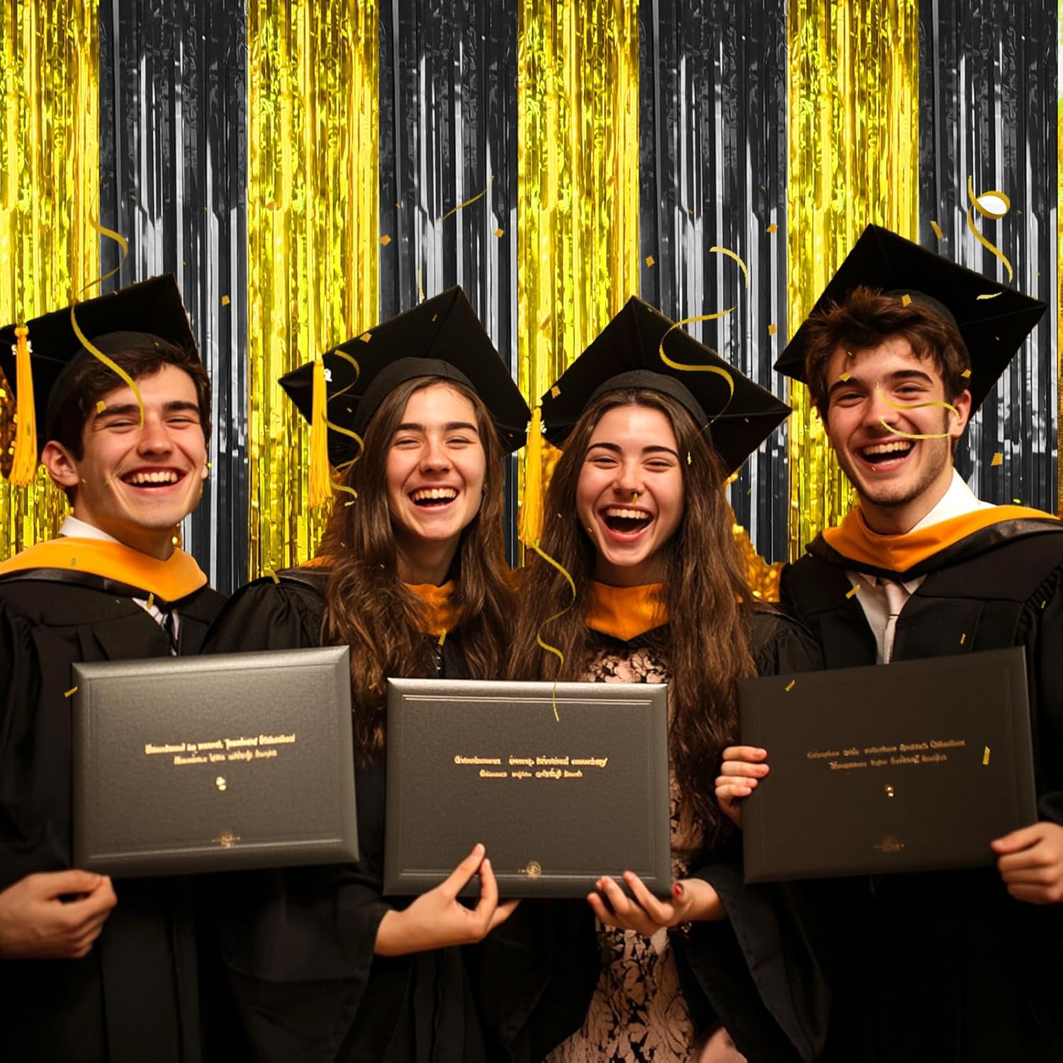4 Packs Black and Gold Foil Fringe Curtain, Black Gold Metallic Tinsel Backdrop for Birthday, Wedding, Graduation Decorations 2025, Anniversary, Retirement Party Decorations Supplies