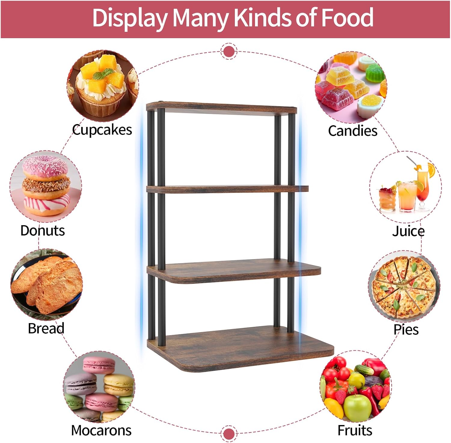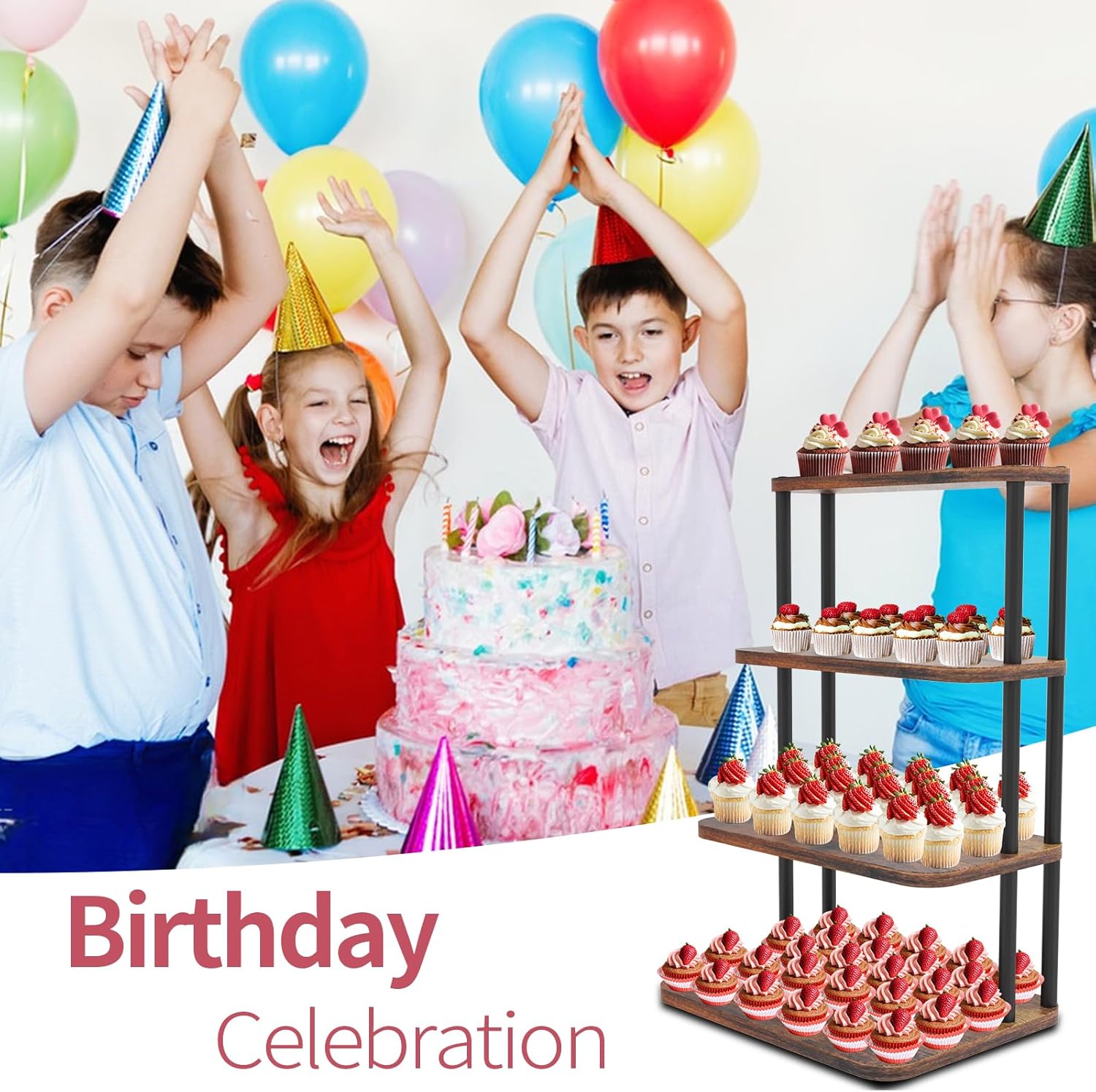 - Non-slip and Stable Tiered Dessert Stand Tower: Iron & wood grain paired with matte finish, 0.5" Thick MDF Base + 4 Support Rods and the cake stand equipped with a non-slip bottom pad, this cupcake stand stays firmly in place, preventing any sliding or tipping. Whether you're hosting a casual gathering or a big celebration, your cupcakes will stay secure and beautifully displayed.