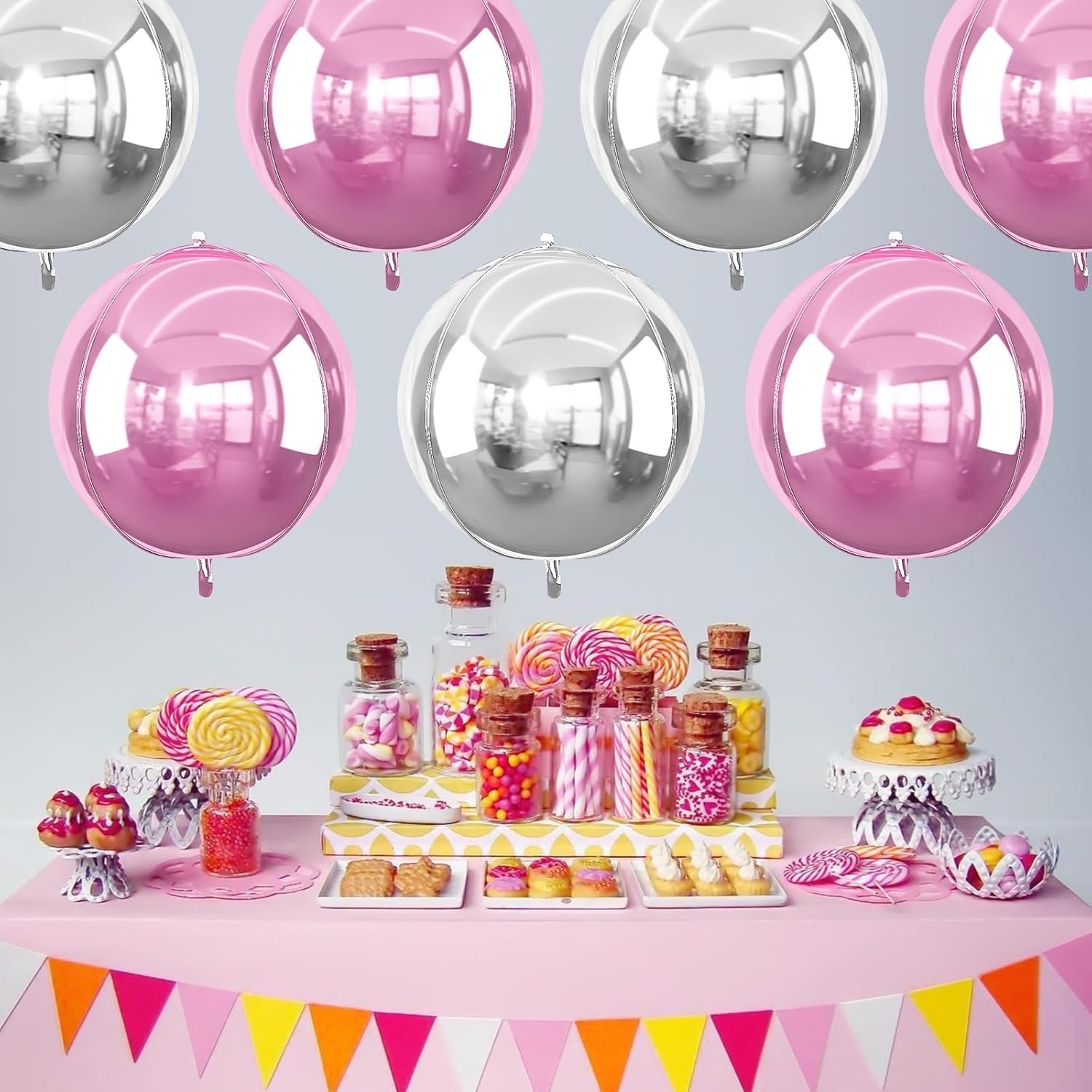 - Package: You will receive 6pcs 22inch 4D round foil balloon, 3pcs pink foil balloons + 3pcs silver foil balloons + 1 straw + 1 roll of ribbon. 4D birthday balloons perfect for decorating the babies, kids, adults’ birthday party.