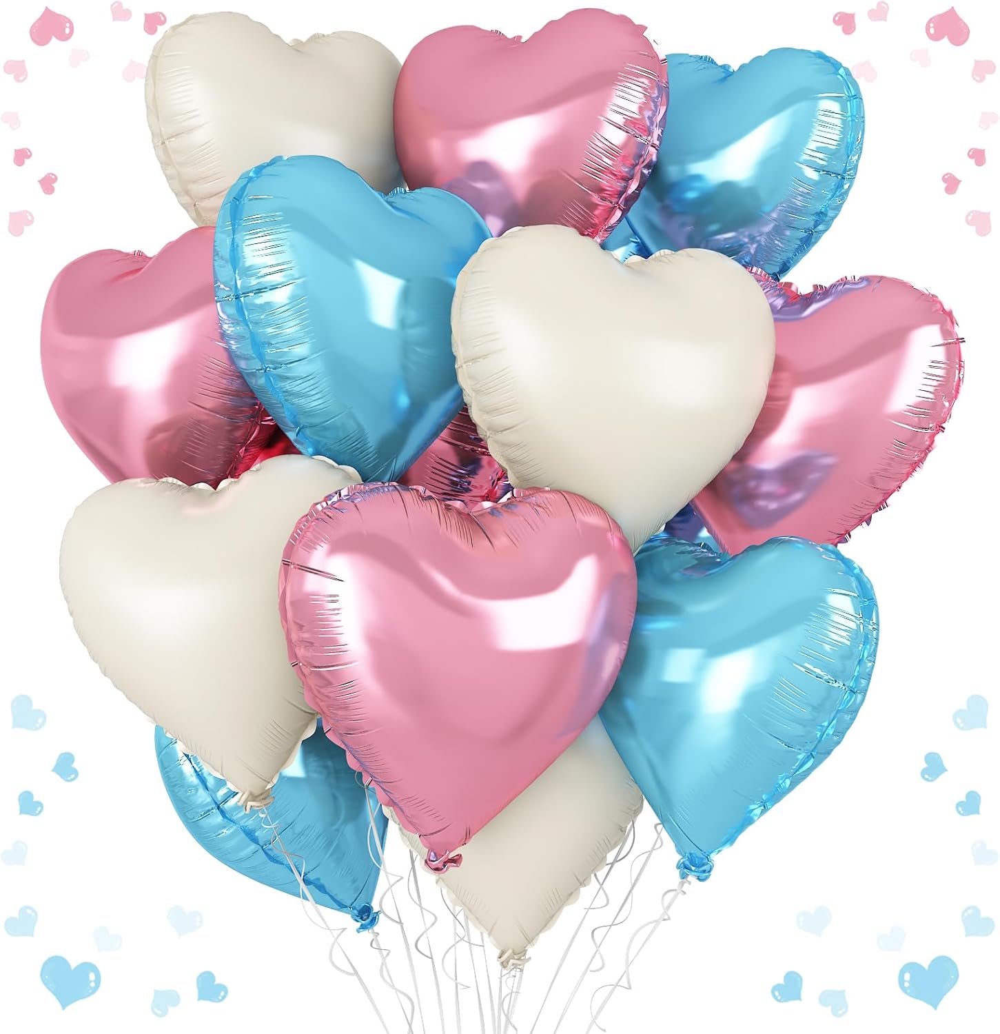 - Charming Pink Blue Heart Balloons: Elevate your celebration with our set of 12 heart-shaped nude white blue balloons, each measuring 18 inches. Accompanied by a ribbon, these balloons are ideal for creating a festive and loving atmosphere at any special event.