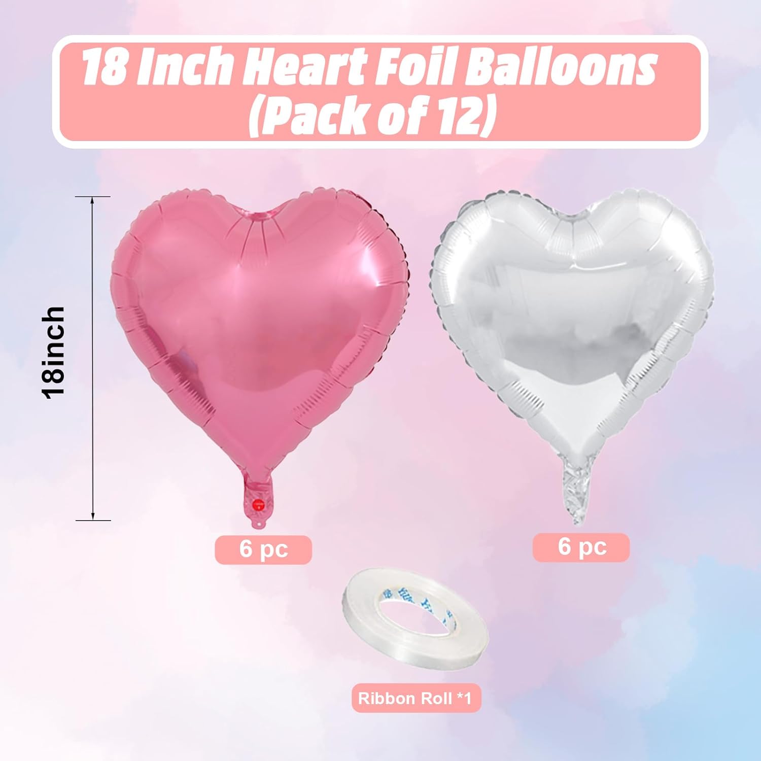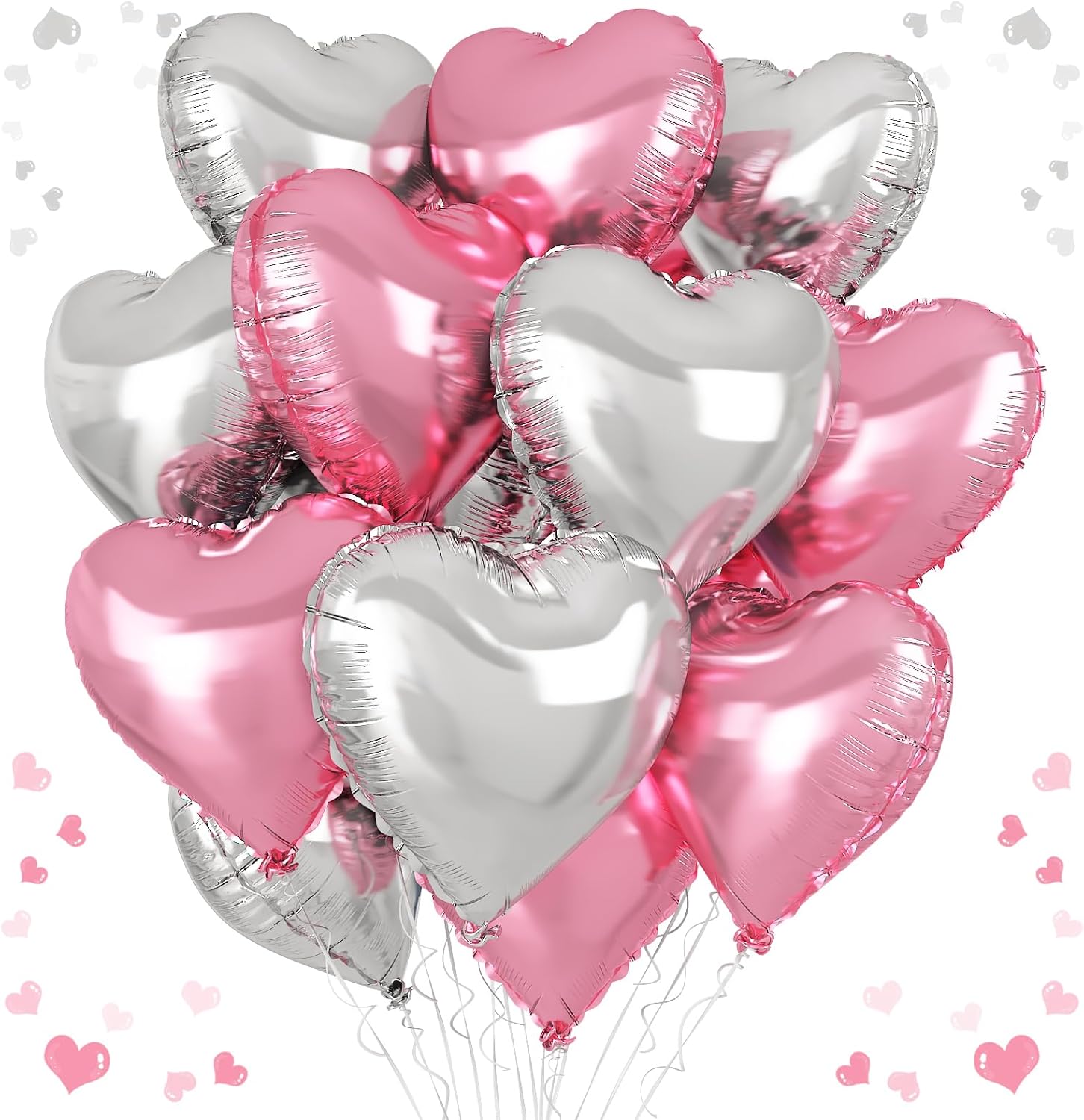 - Charming pink silver Heart Balloons: Elevate your celebration with our set of 12 heart-shaped light pink silver balloons, each measuring 18 inches. Accompanied by a ribbon, these balloons are ideal for creating a festive and loving atmosphere at any special event.