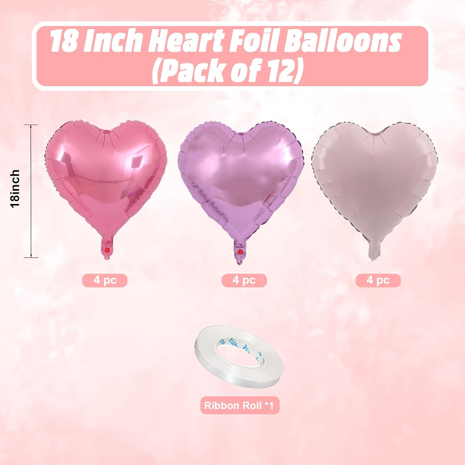 - Charming Pink Purple Heart Balloons: Elevate your celebration with our set of 12 heart-shaped light purple and pink balloons, each measuring 18 inches. Accompanied by a ribbon, these balloons are ideal for creating a festive and loving atmosphere at any special event.