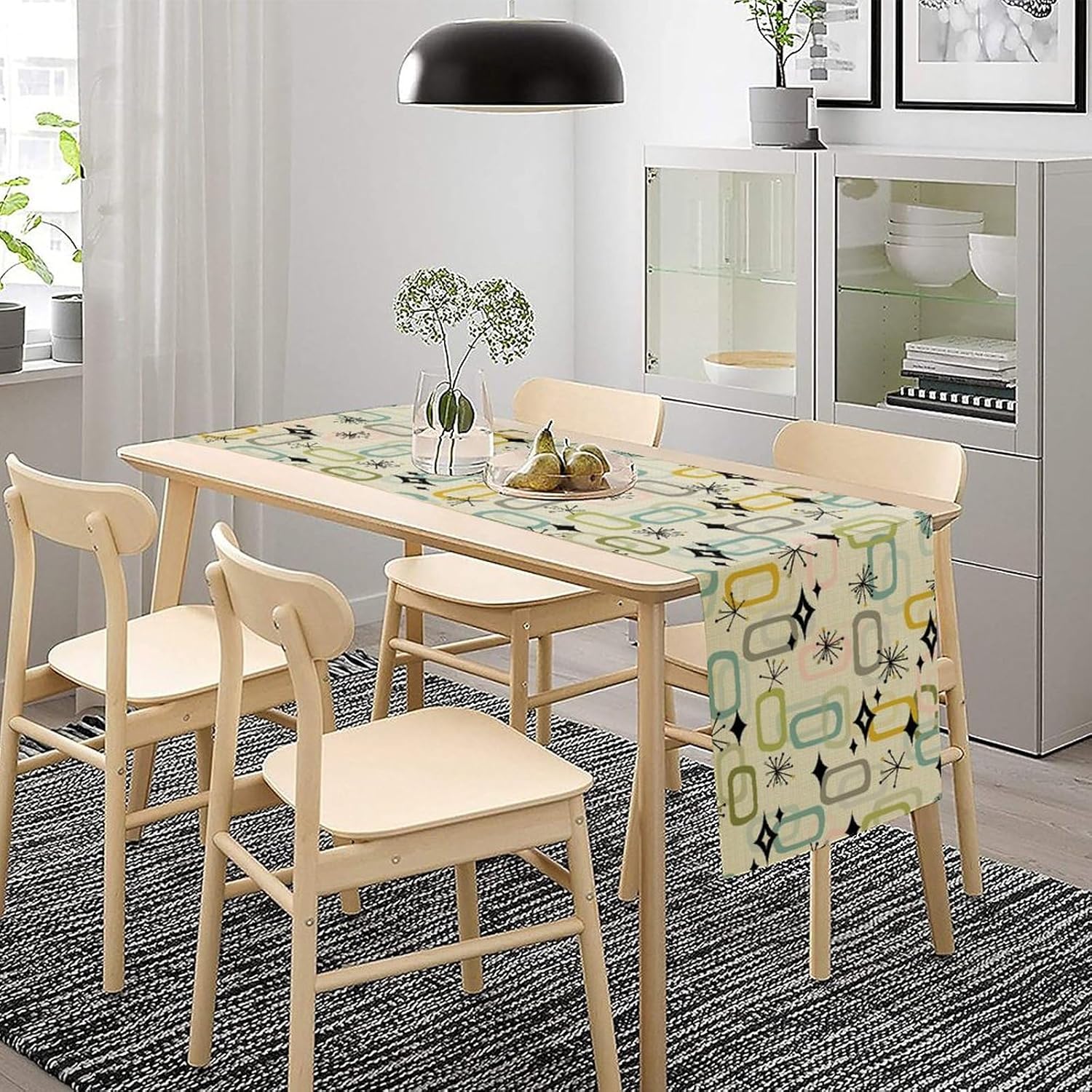 Mid Century Table Runner, Flag Retro Atomic Starburst 1950s Abstract Geometric Space Tabletop Decoration for Home Kitchen Restaurant Table Flag 13x60 Inch