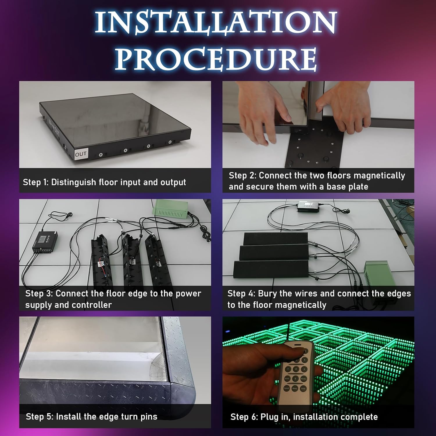 - ➤【Stunning 3D Visual Effects】Combining high-quality tempered glass with infinity mirror panels and LED lighting, this dance floor creates mesmerizing 3D effects that instantly captivate attention. Perfect for weddings, parties, and events, it elevates the visual impact and leaves a lasting impression.