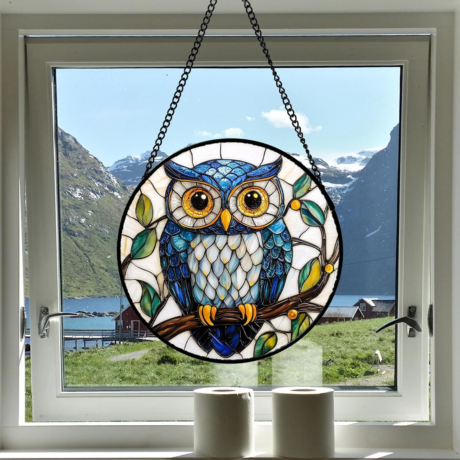 Stained Glass Window Hanging, Owl Gifts for Women Sun Catchers Diamond Glass Panel Hangings Birds Suncatcher Decor for Birthday for Women, Men, Wife, Aunt, and Mom 11.8x11.8 in