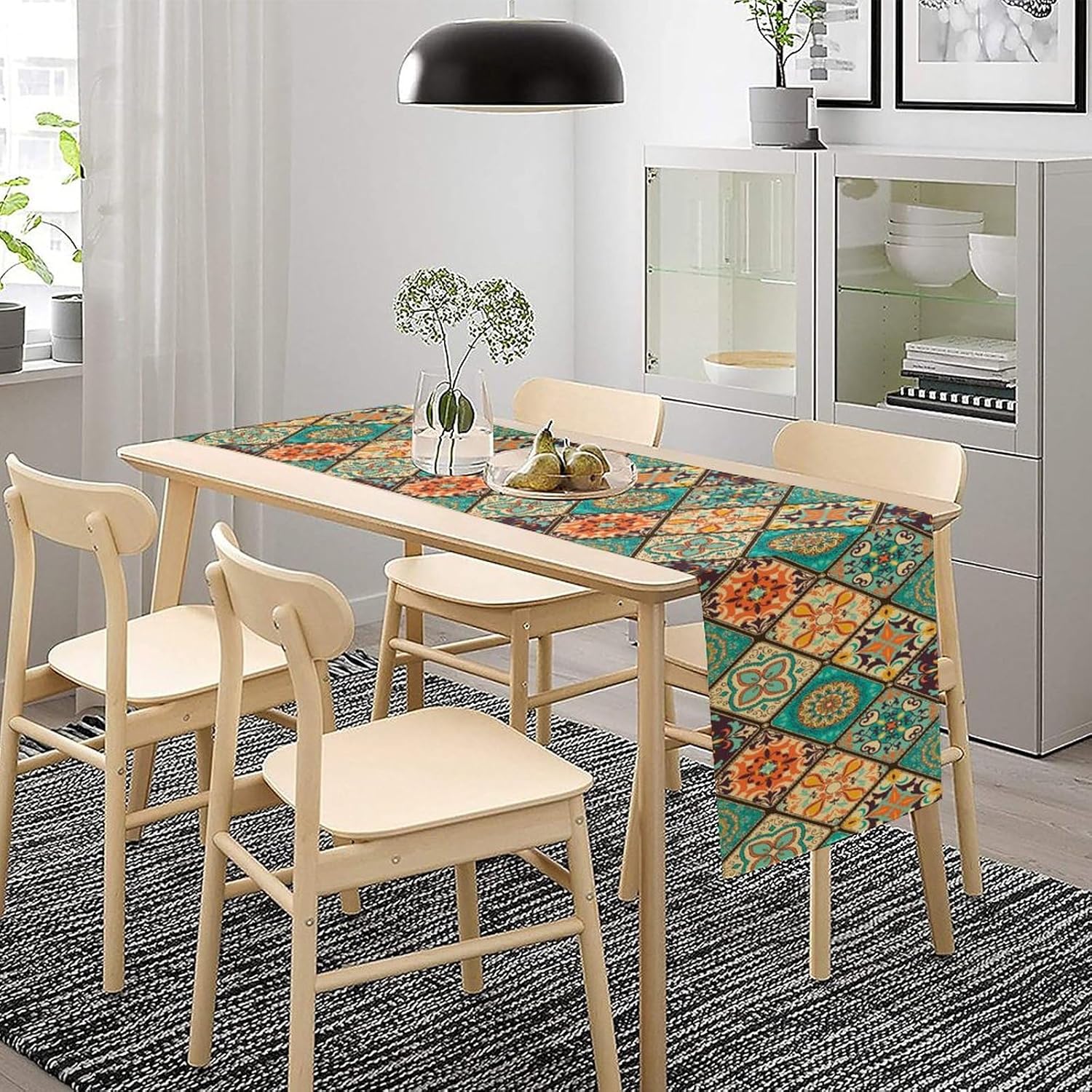 Boho Floral Table Runner,Vintage Bohemian Style Table Runner for Kitchen Dining Table Home Party Decoration 13x36 Inch