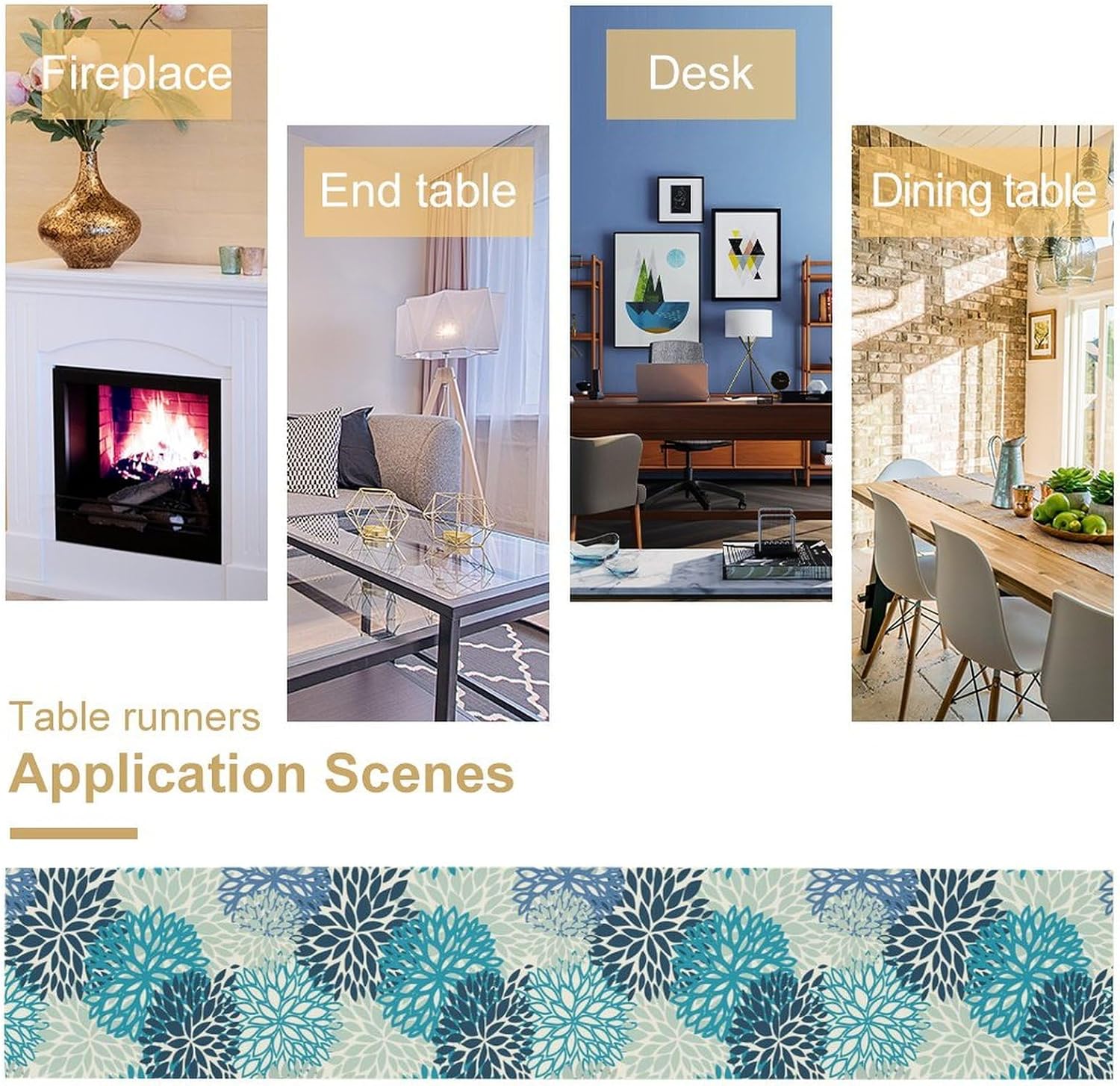 Floral Table Runner,Blue Flowers Print Spring Summer Table Cloth Kitchen Dining Table Home Party Decoration 13x60 Inch
