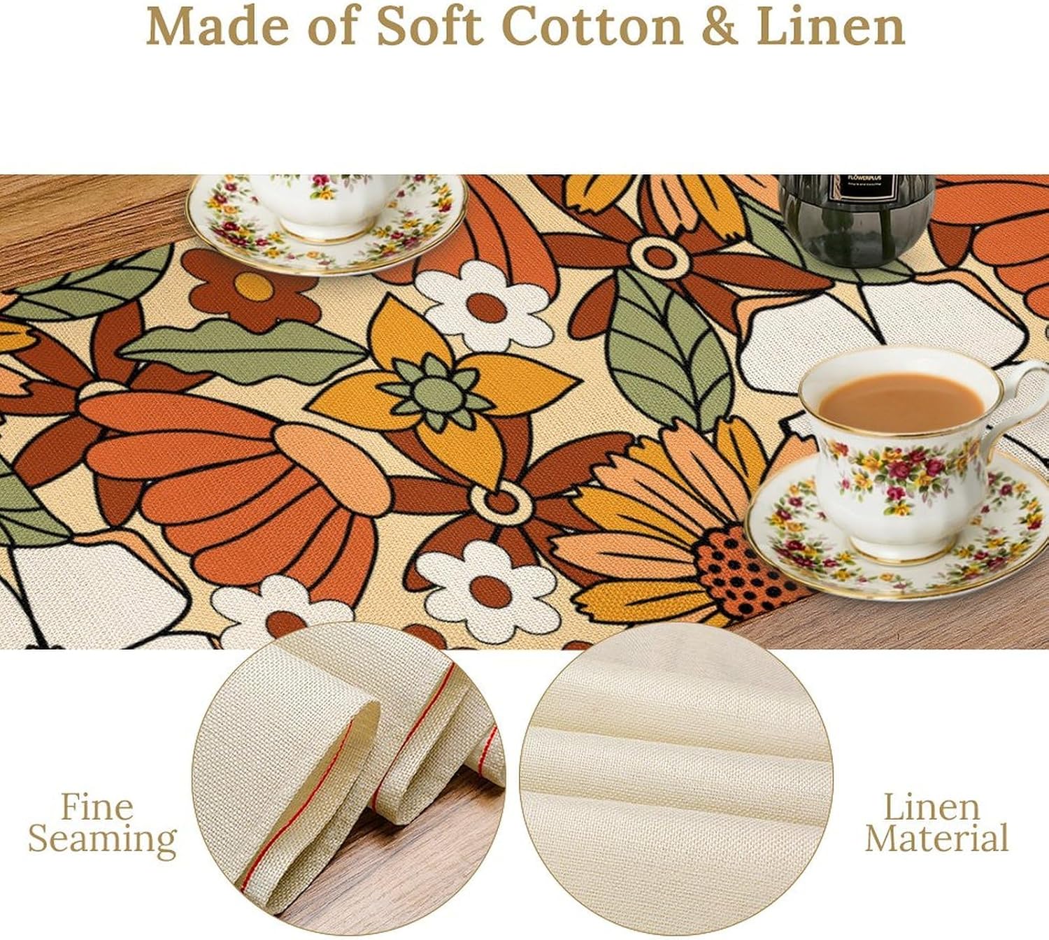 Vintage Floral Table Runner,Boho 70s Style Retro Flower Table Cloth Kitchen Dining Table Home Party Decoration 13x36 Inch