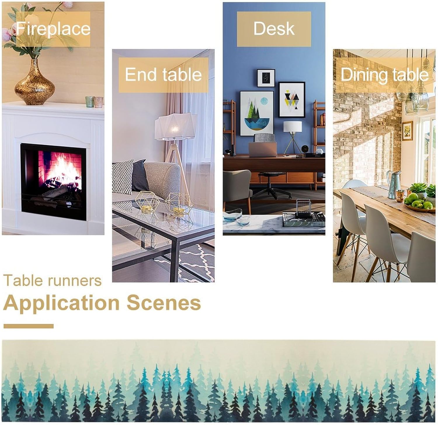 Misty Forest Table Runner,Foggy Blue Forest Landscape Table Runner for Kitchen Dining Table Home Party Decoration 13x120 Inch