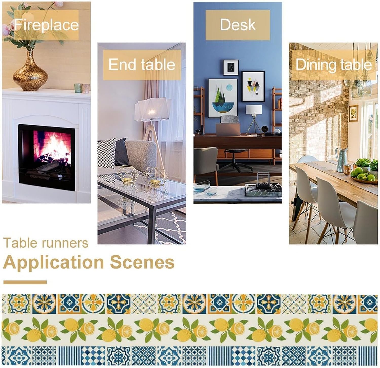 Lemon Table Runner,Watercolor Blue Fruits Green Leaves Print Table Cloth Kitchen Dining Table Home Party Decoration 13x120 Inch