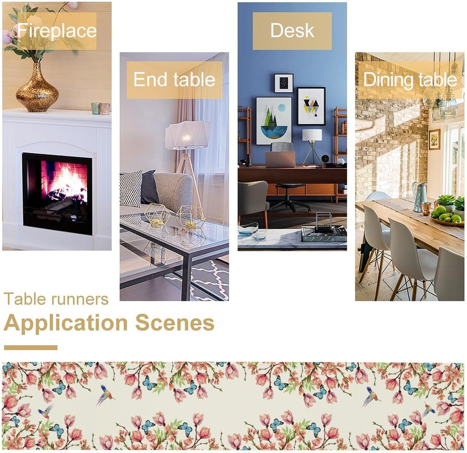 Flowers Table Runner,Floral Bird Butterfly Spring Table Cloth Kitchen Dining Table Home Party Decoration 13x90 Inch