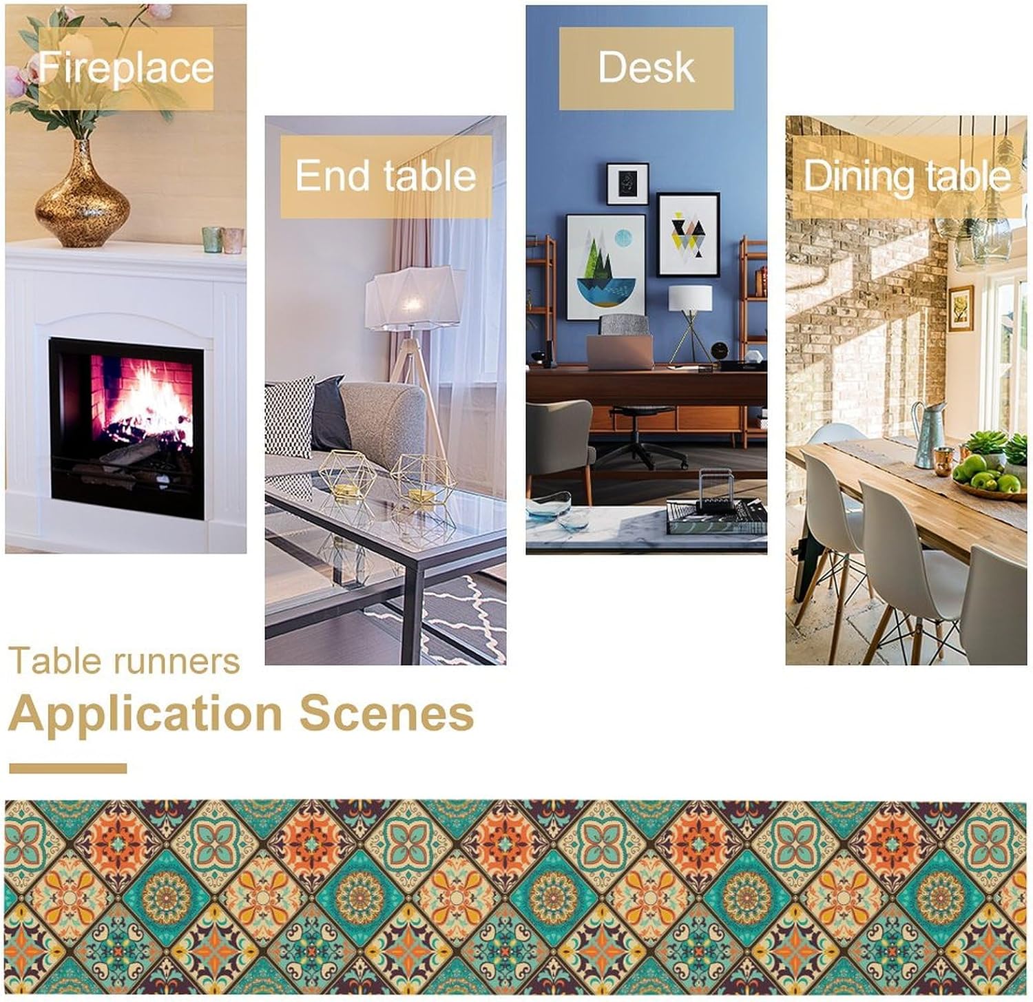 Boho Floral Table Runner,Vintage Bohemian Style Table Runner for Kitchen Dining Table Home Party Decoration 13x108 Inch