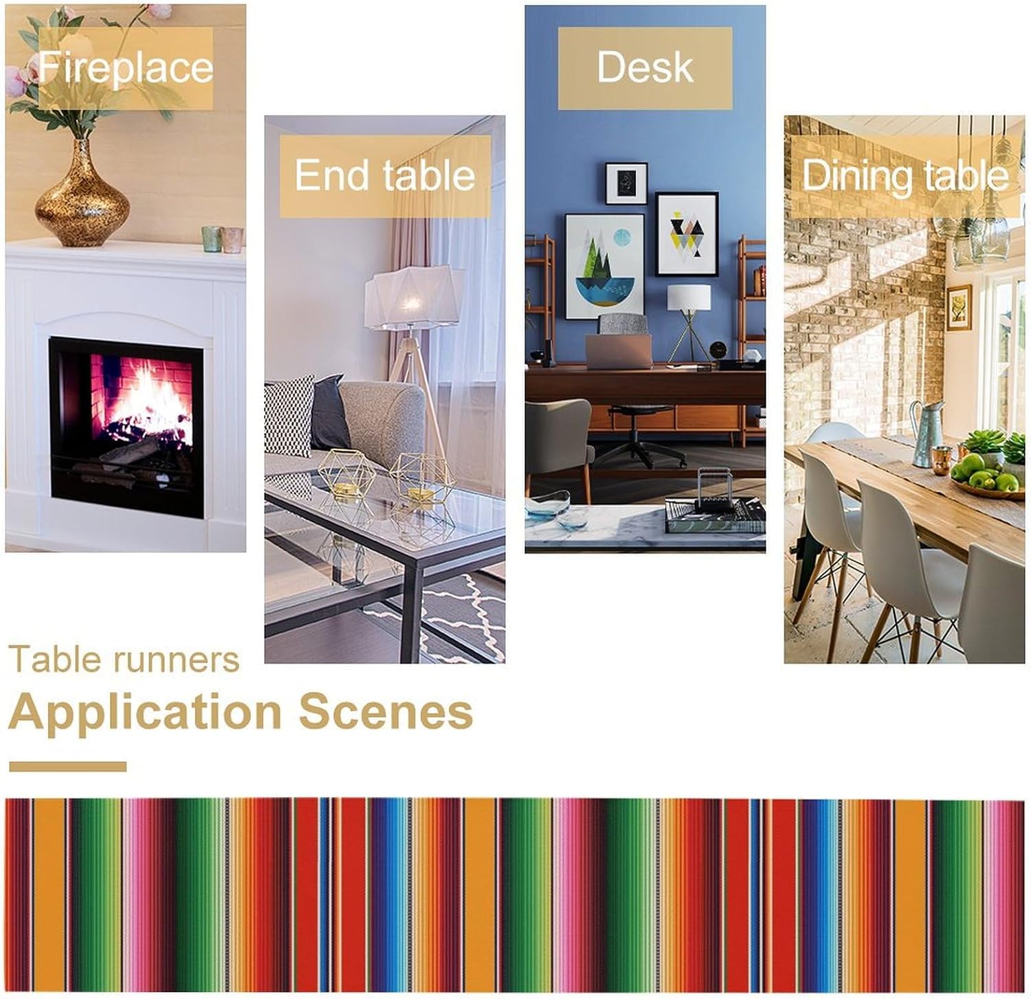 Mexican Table Runner,Colorful Stripe Art Table Runner for Kitchen Dining Table Home Party Decoration 13x90 Inch