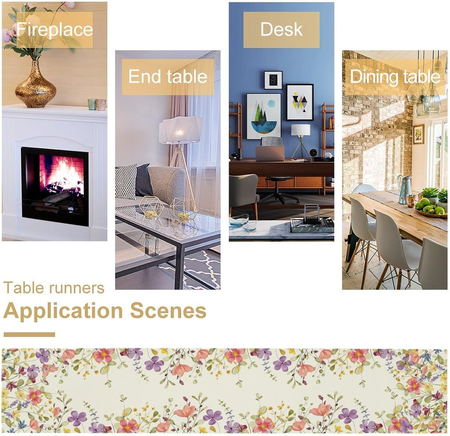 Floral Table Runner,Flowers Plant Print Spring Table Runner for Kitchen Dining Table Decoration for Home Party Decor 13x60 Inch