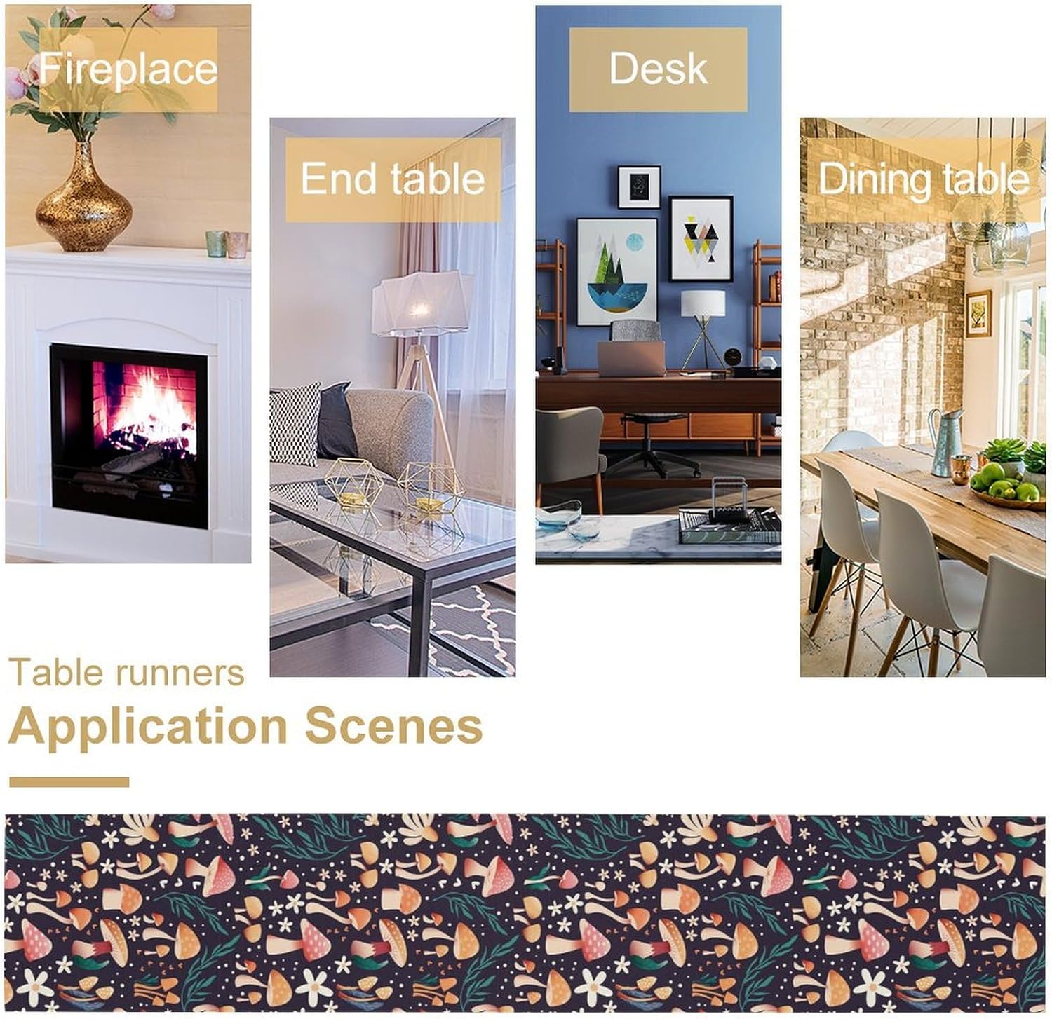 Mushroom Table Runner,Retro Forest Plant Table Cloth Farmhouse Kitchen Dining Table Decoration for Home Party Decor 13x120 Inch
