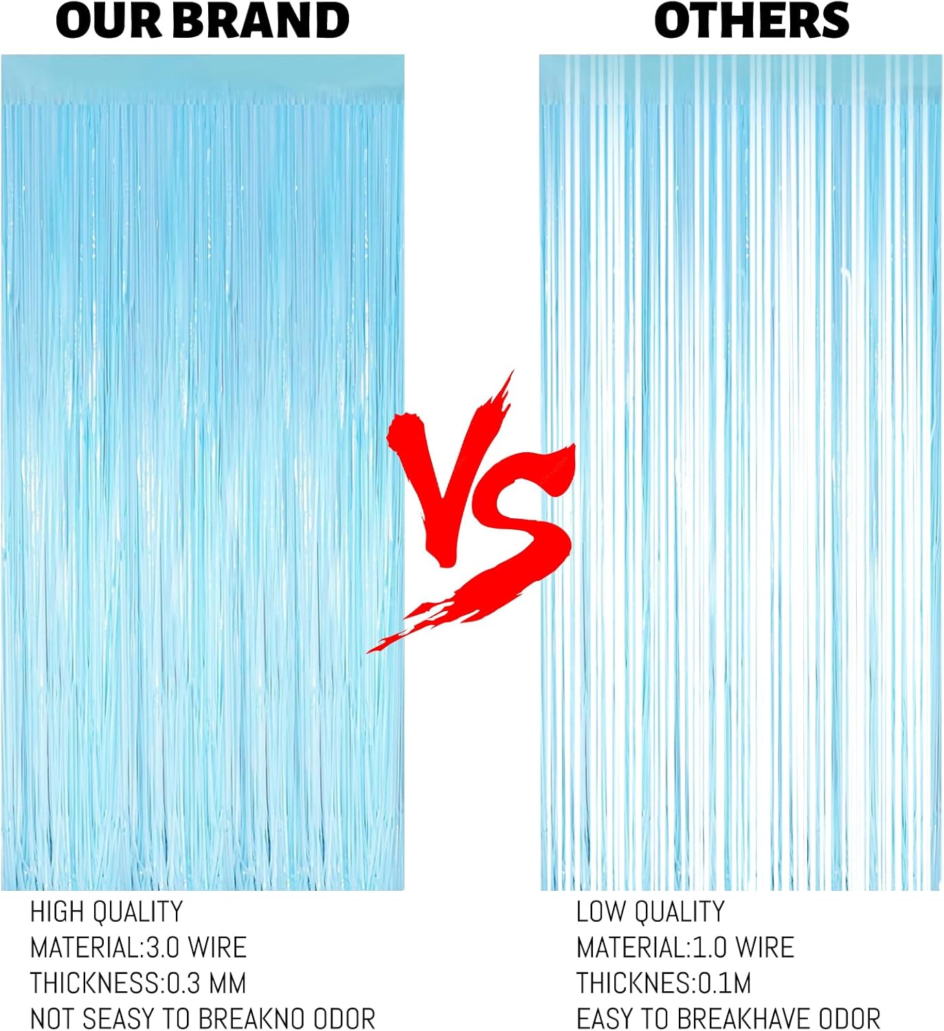 - Reflective effect:Foil fringe curtains have a thickness of 0.4mm, making them thicker and less likely to wrinkle or crease, resulting in a durable and long-lasting decoration. Additionally, Keyali Foil fringe streamers are made of sturdy and flexible PET material, making them resistant to breaking or tearing.Metallic streamers come in a range of beautiful colours with a shiny, iridescent, and reflective surface that creates an eye-catching and mesmerising effect!