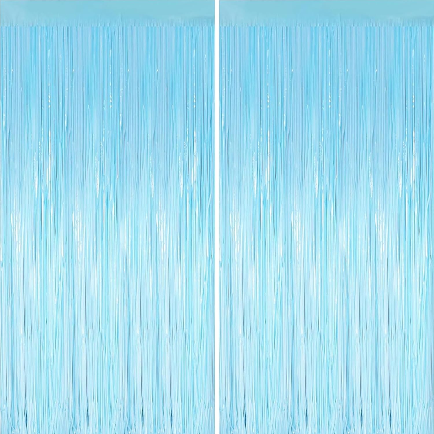 Keyali 2 Pack 3.3 * 8.3 ft Foil Curtain Metallic Tinsel Fringe Curtains Photo Booth Props Backdrop for Birthday Wedding Engagement Baby Shower Christmas Holiday Celebration Party,Macaron Light Blue