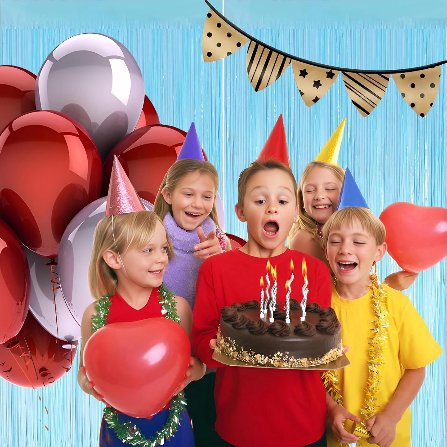 - Pair with other party decorations: Tinsel backdrop curtain can be paired with LED lights, balloons, banners, wreath, garlands, swirl streamer, tissue paper pom poms.