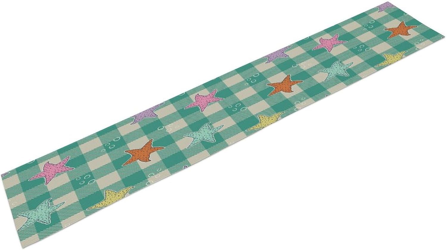 Starfish Plaid Table Flag Green Plaid and Marine Life Starfish Kitchen Table Flag Suitable for Birthday Party Restaurant Decoration Outdoor Picnic 13 * 70 Inch