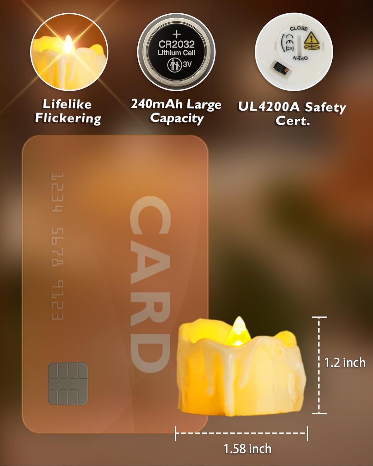 - LIFELIKE FLICKER: Designed to mimic the charm of real candles—soft, warm flicker and a melted edge look. Whether you're setting a cozy mood in your living room or decorating wedding tables, they add instant ambiance