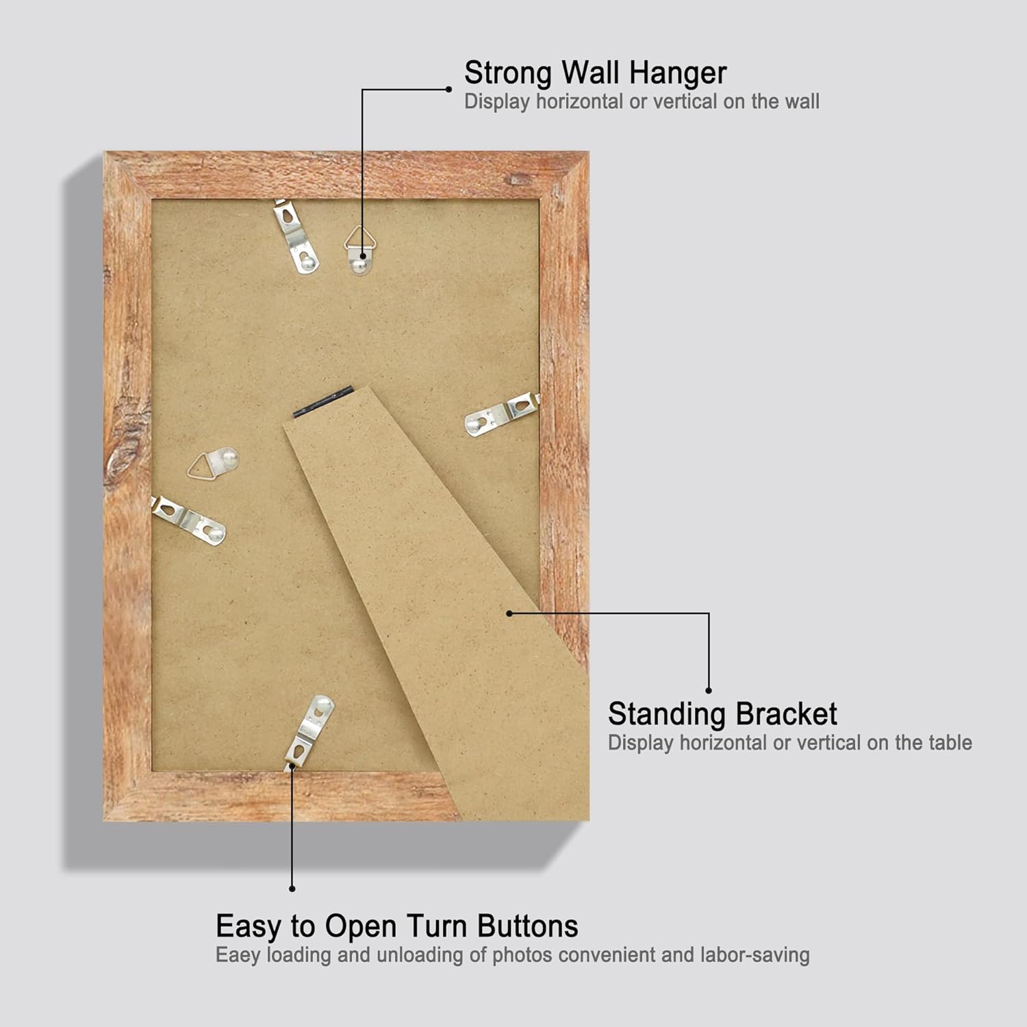 - A Variety of Display Methods: Our picture frames could be hang vertically or horizontally, placed on a desk by their easel-back, or hang on the wall with the mounted hanging hanger.