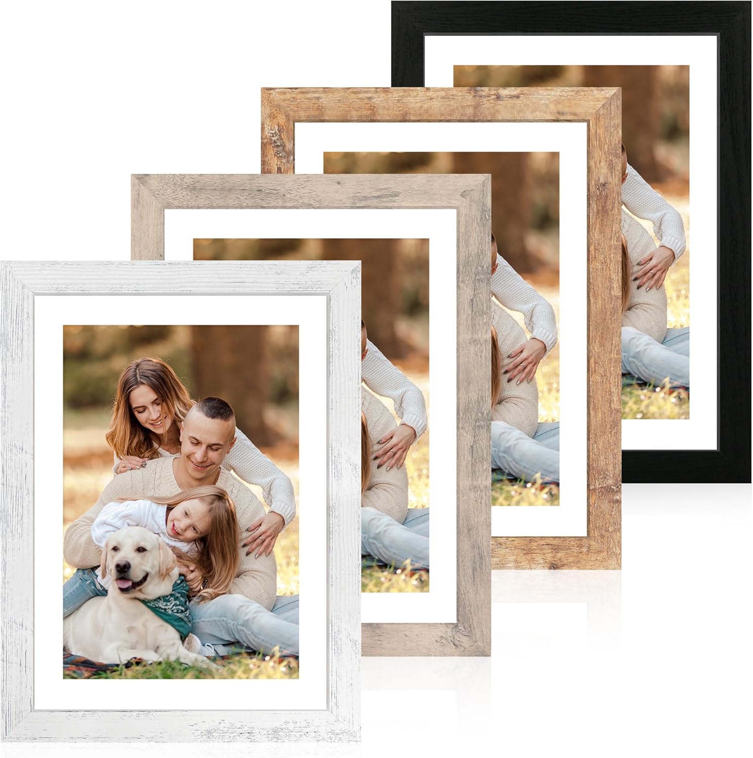 10x14 Picture Frame Set of 4 with Tempered Glass, Display 8x12 Picture with Mat or 10 x 14 Without Mat, Mixed Color Wood Photo Frames for Wall Mounting