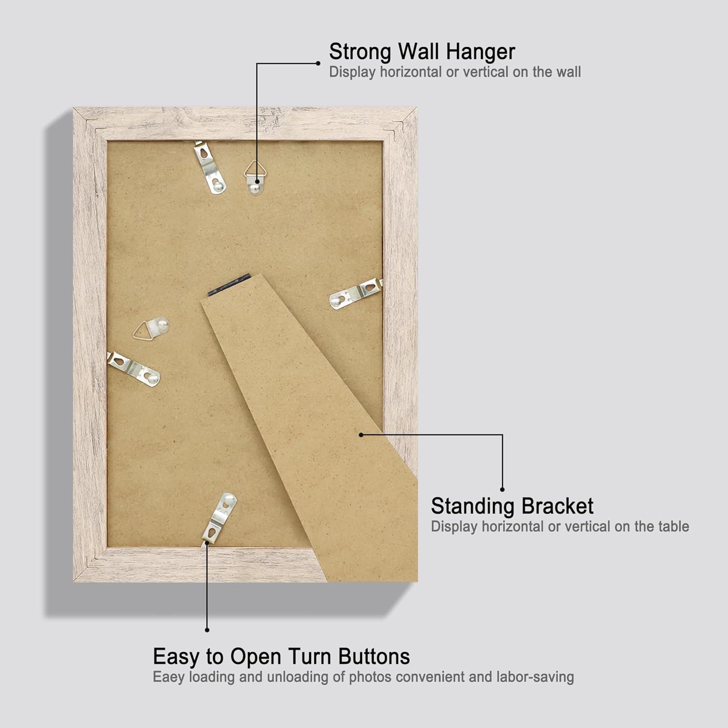 - A Variety of Display Methods: Our picture frames could be hang vertically or horizontally, placed on a desk by their easel-back, or hang on the wall with the mounted hanging hanger.