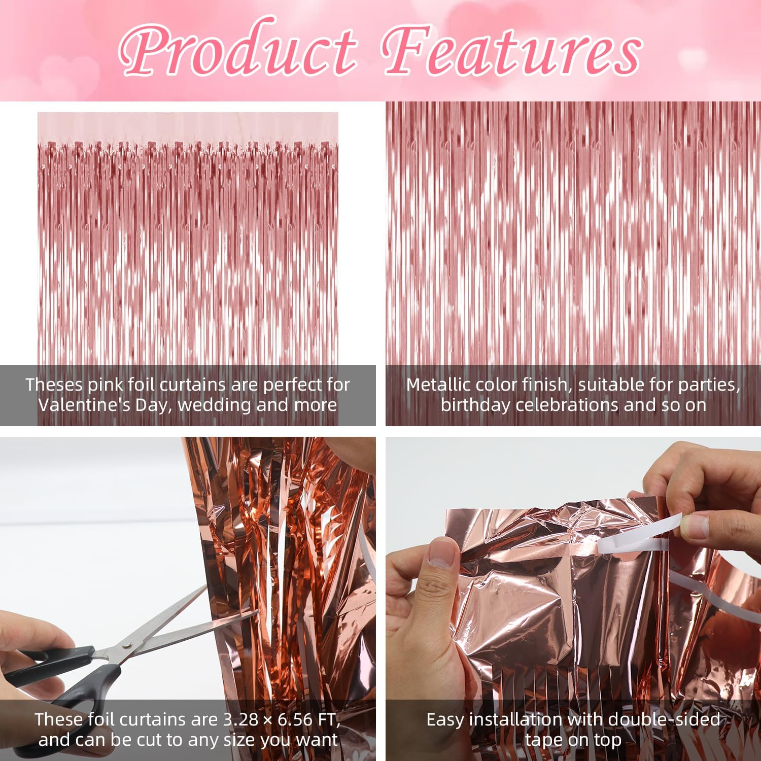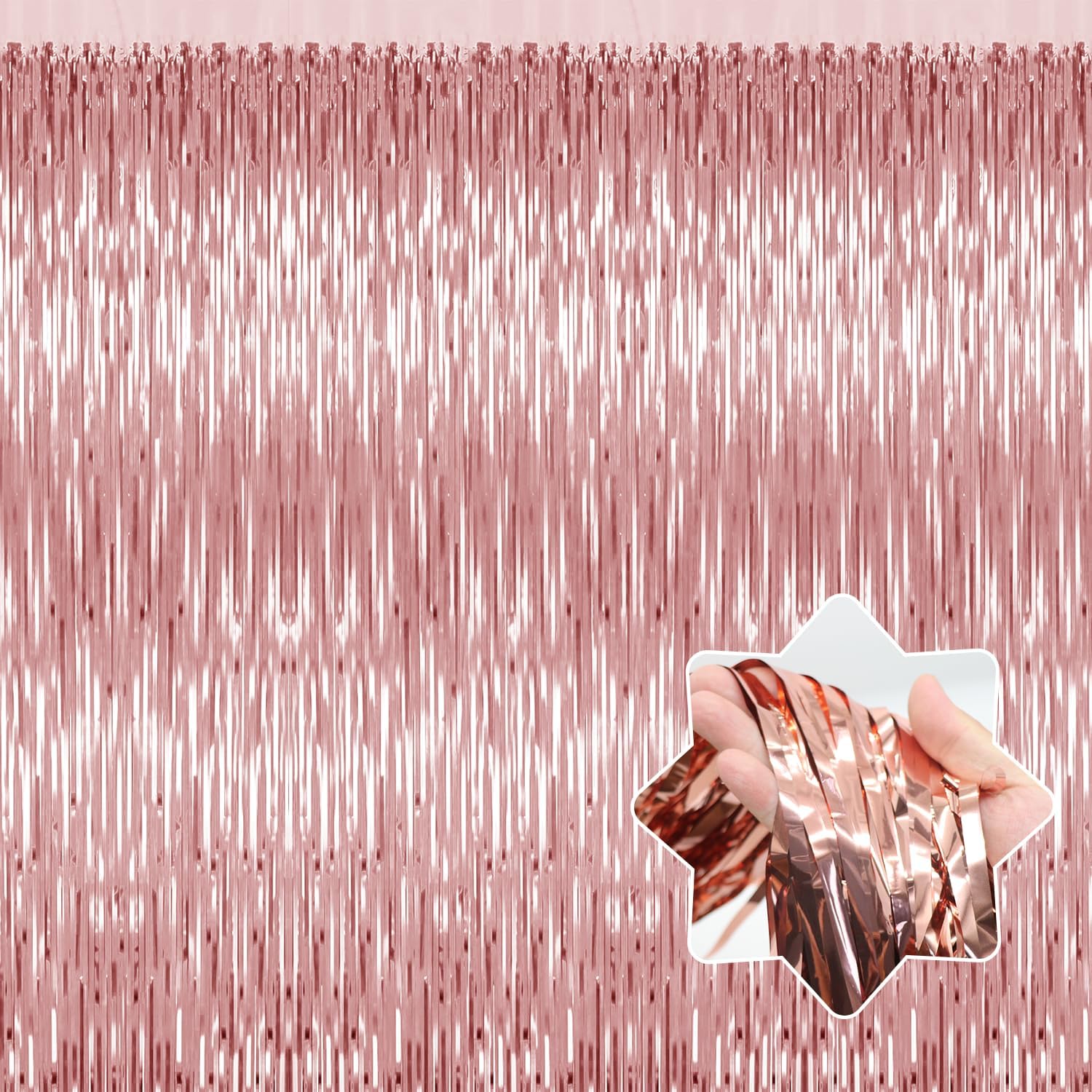 - Rose Gold Birthday Backdrop:5 packs of foil fringe curtains, the size of the foil curtain is 3.28 ft x 6.56 ft.It's long enough to fit any occasion. Please do not stick the foil curtain on uneven or stained walls to prevent it from falling off.