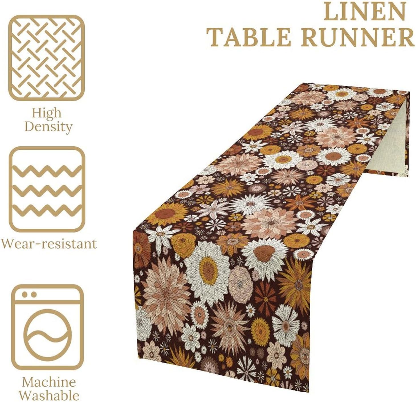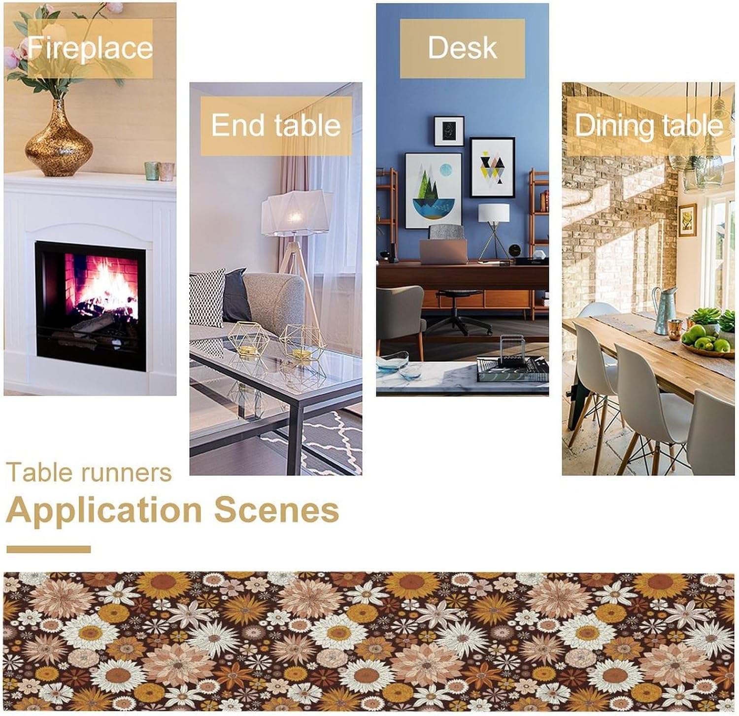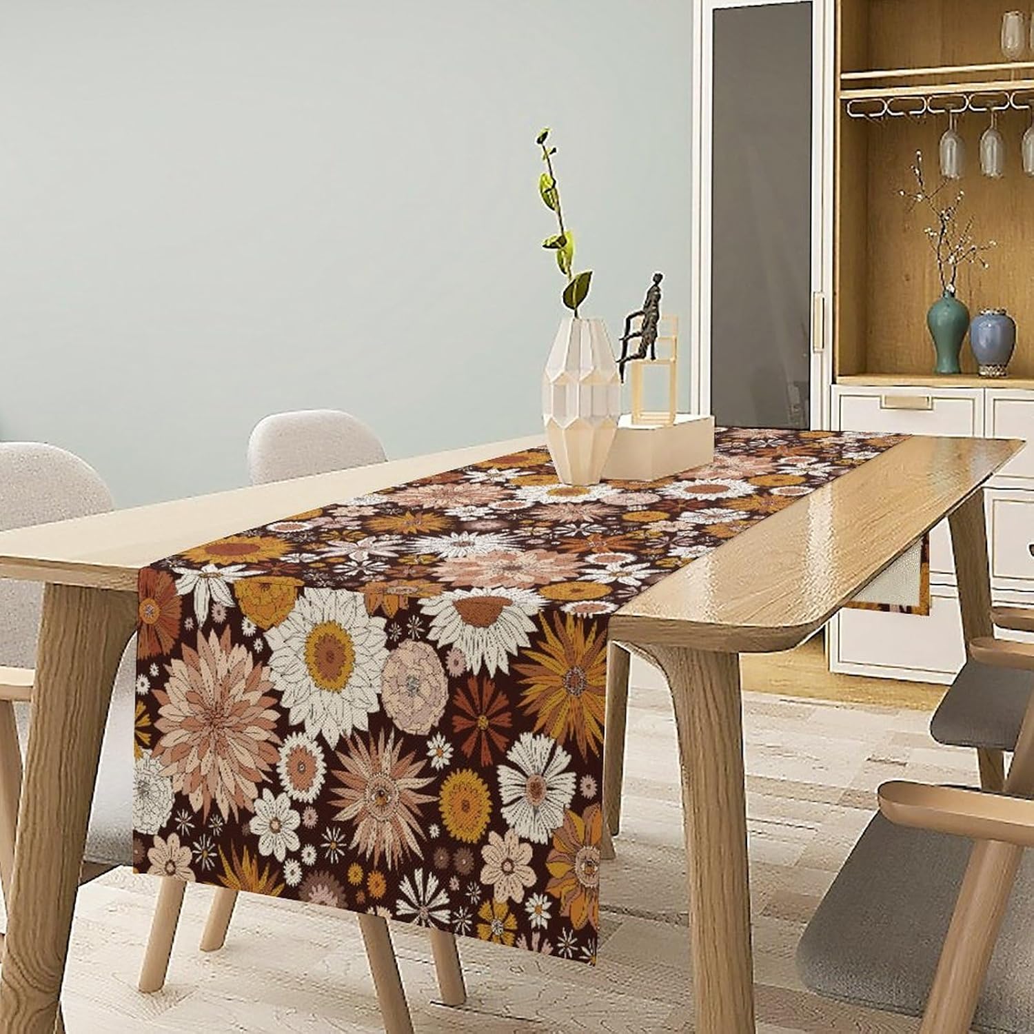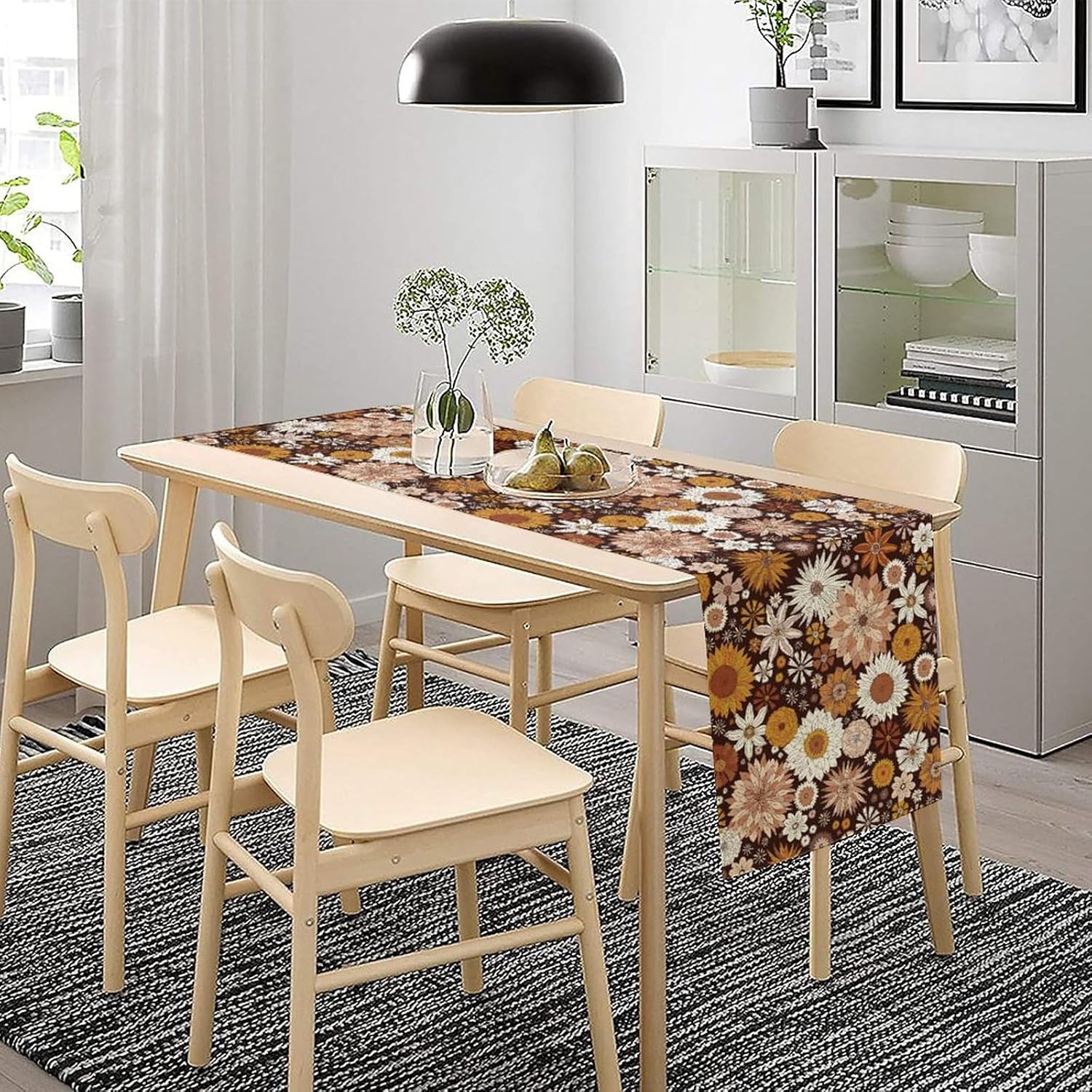 Boho Floral Table Runner, Vintage Country Farmhouse Daisy Flowers Modern Kitchen Dining Room Decoration for Indoor and Outdoor Wedding Party Banquet Table Runner 13x70 Inch