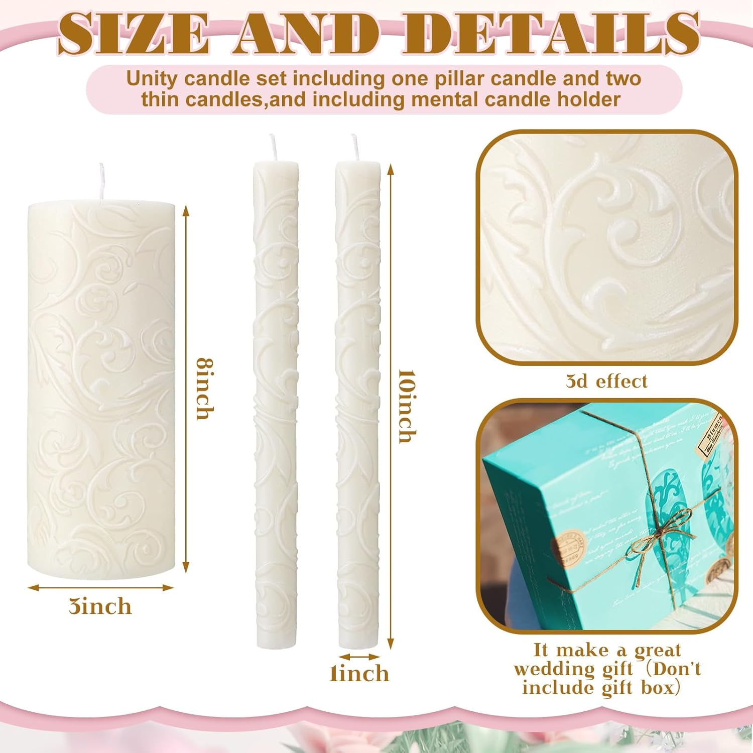- Elegant Decor: the unity candle set with stand is exquisitely designed for wedding ceremony and home decor, elegant and stylish, will be an ideal way to decorate your living room, bedroom, bathroom, dining room as a table centerpiece, suitable for celebrations, anniversaries, housewarming and so on